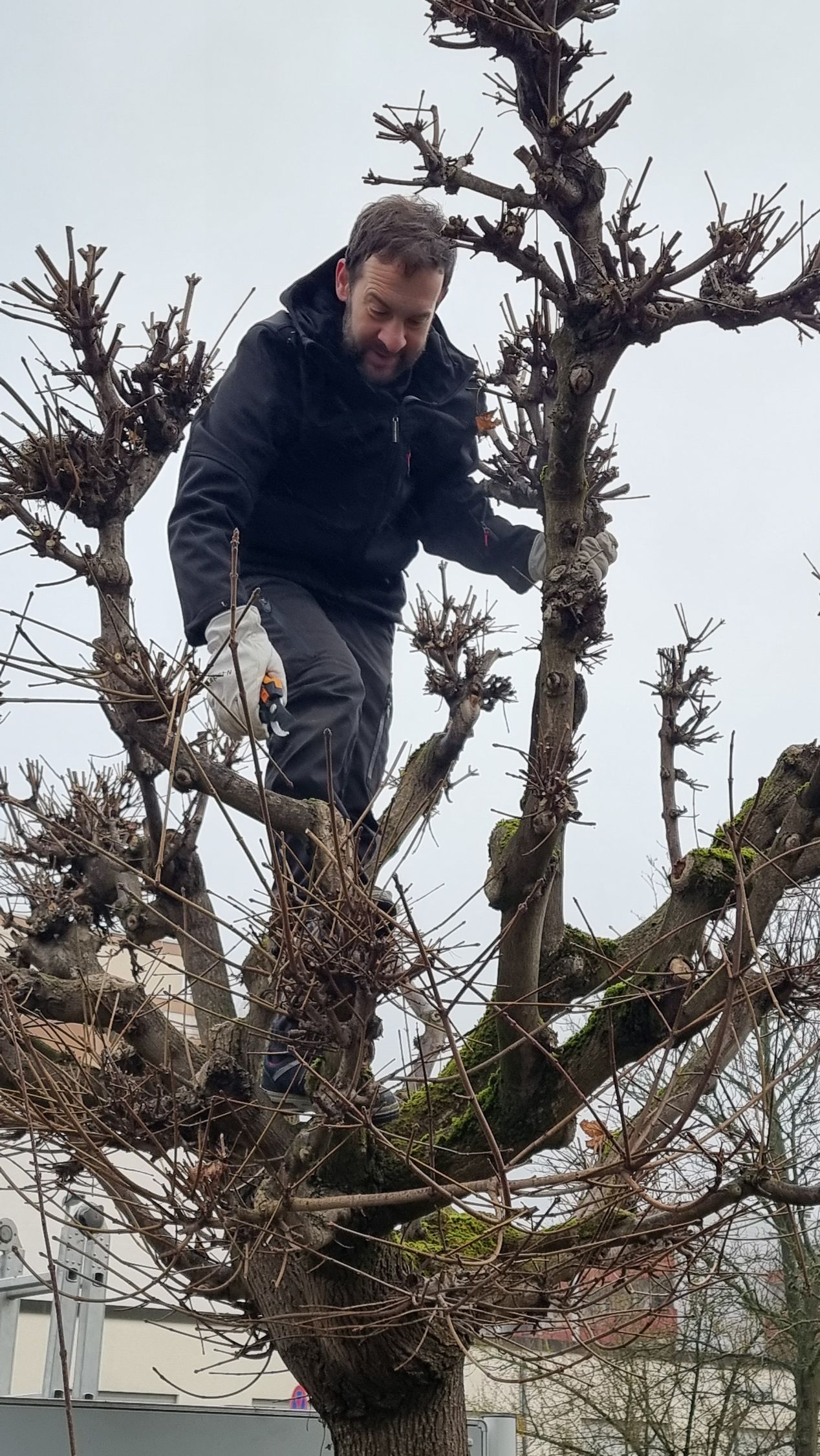 Baumschnitt beim ev. Gemeindehaus in Hochberg