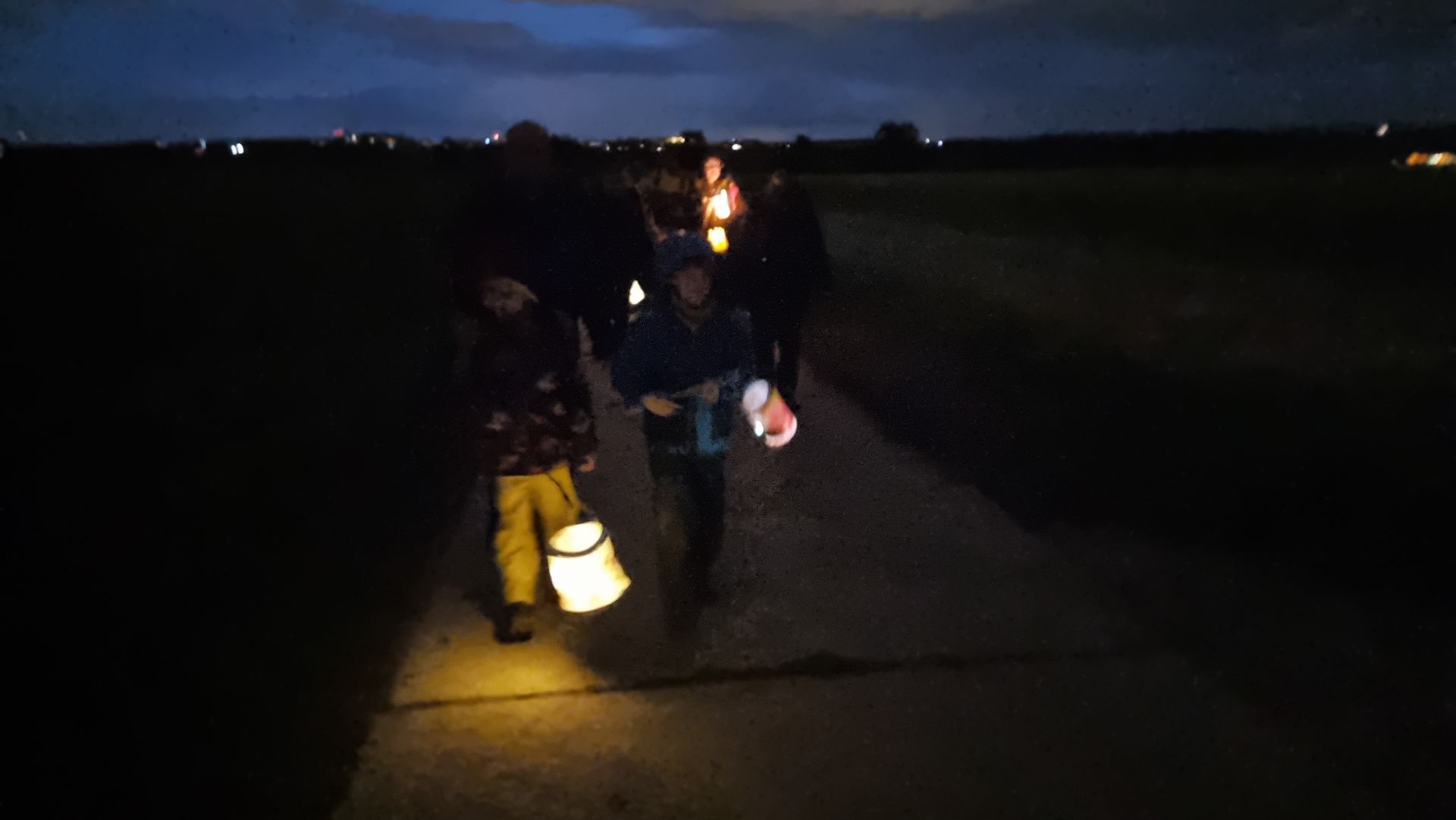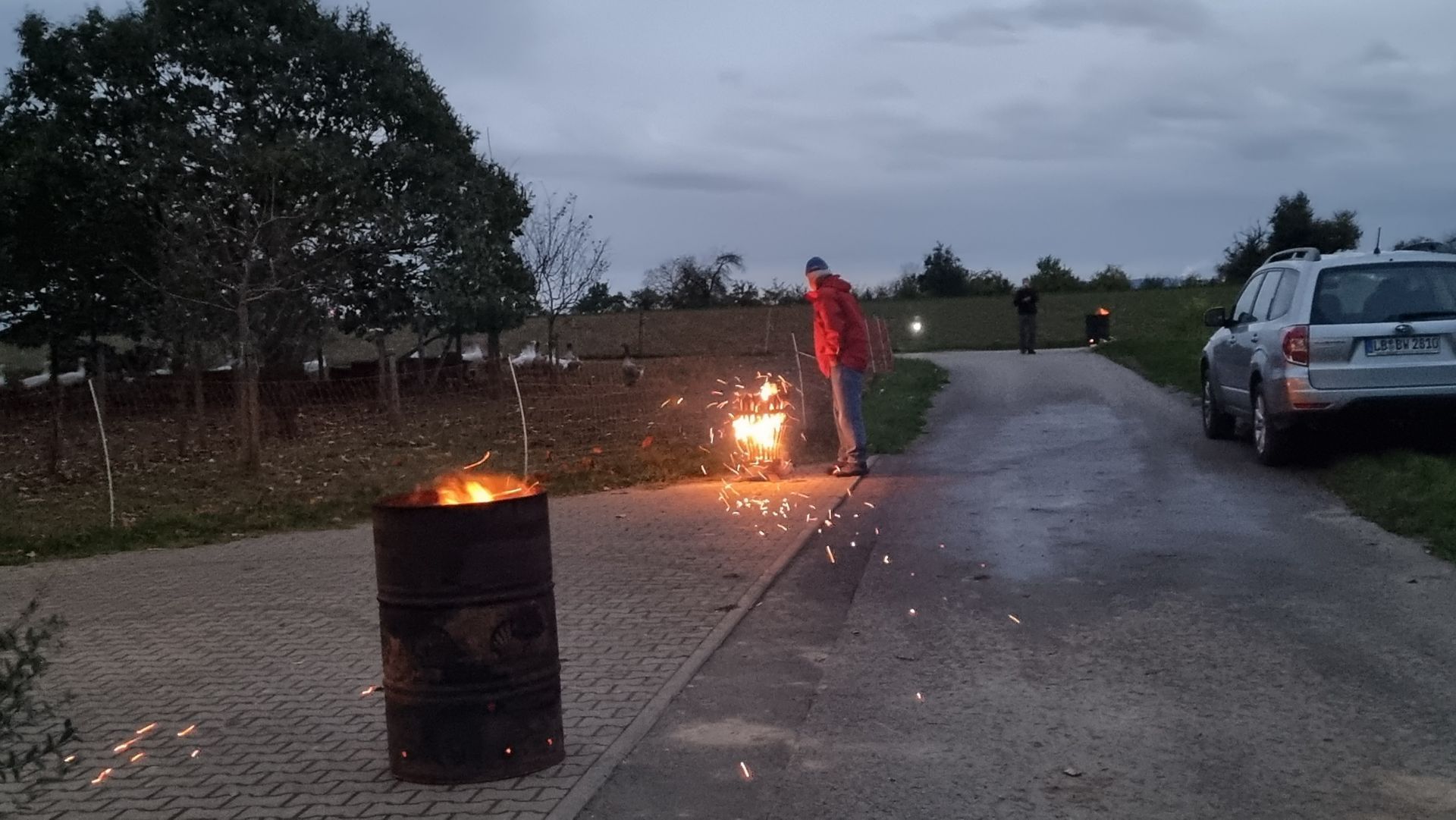 Und wir hatten Glück beim Wetter, selbst der Laternenlauf konnte stattfinden. Die Kinder kamen dick vermummelt samt ihren Familien bei heftigem Wind an den Feuerstellen rund um die Halle an und konnten sogar ihr Stockbrot in der Feuerschale grillen.