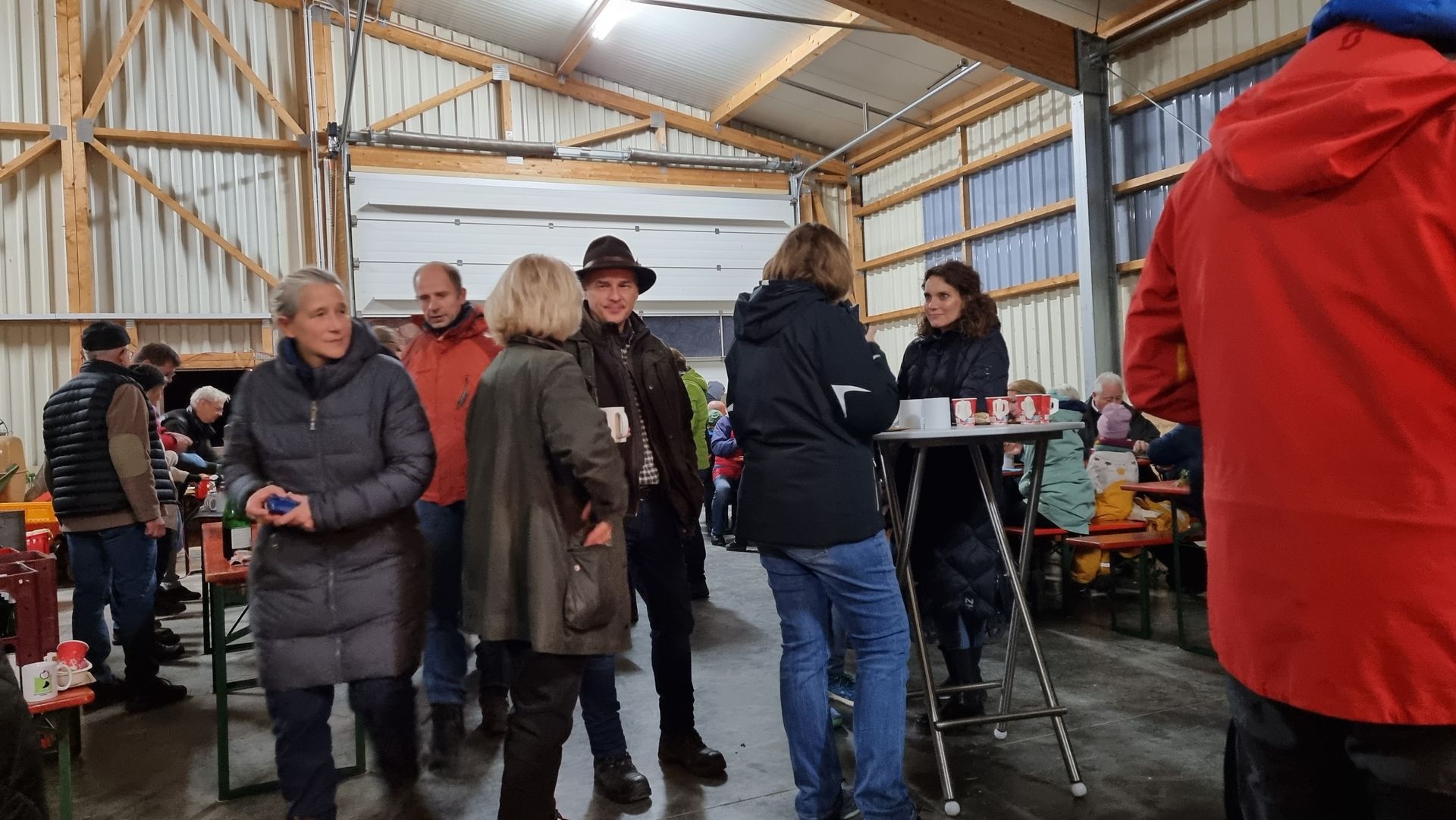 Nach einigen Diskussionen entschieden wir uns aufgrund der sehr unbeständigen Wetterlage das Glühweinfest nicht auf dem Gelände der ehemaligen Gärtnerei Benz abzuhalten, sondern in einer Halle, die uns die Familie Aupperle freundlicherweise zur Verfügung gestellt hat. Der Hof der Familie Aupperle liegt gegenüber der ehemaligen Gärtnerei Benz, insofern war es für die Gäste relativ leicht zu finden.