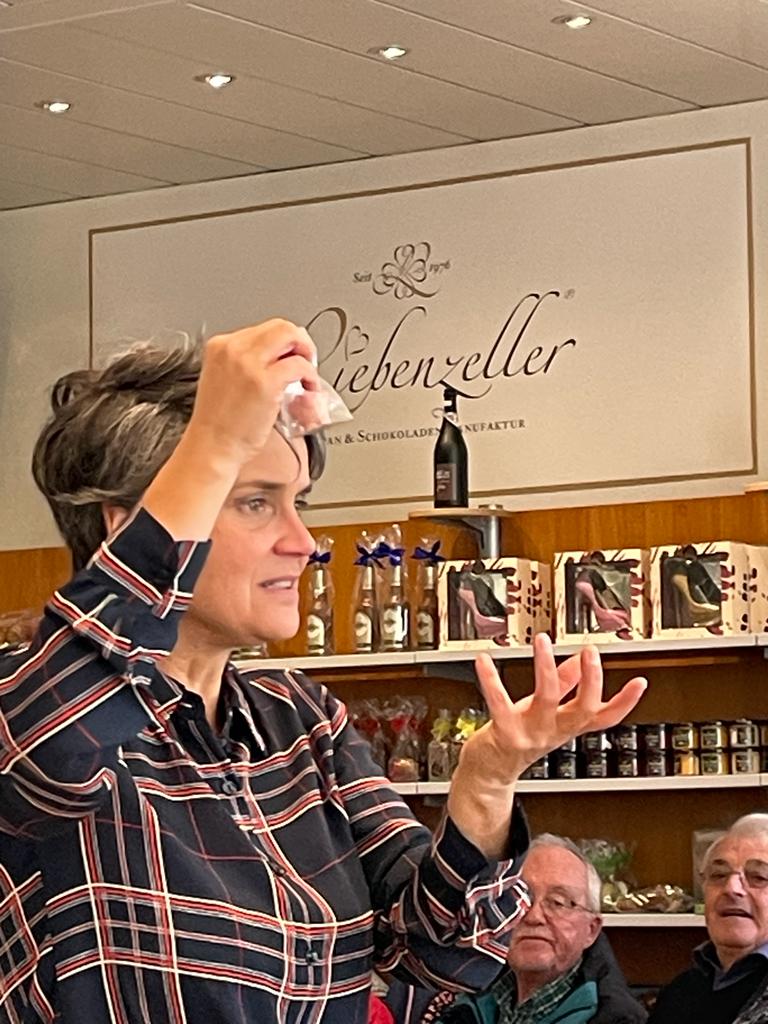 Unsere erste Station war die Liebenzeller Marzipan & Schokoladen Manufaktur. So richtig etwas darunter vorstellen konnten sich, glaube ich, die wenigstens von uns. Und dann tauchten wir ein in eine Welt des Genusses. Eine Mitarbeiterin der Marzipanmanufaktur gab uns einen äußerst interessanten und umfassenden Einblick in die Welt der Marzipan- und Schokoladenherstellung, dem Unterschied zwischen Industriemarzipan/-schokolade und Konditoreimarzipan/-schokolade, der Aufbewahrung und nicht zu vergessen, auch die Art und Weise des Genusses.