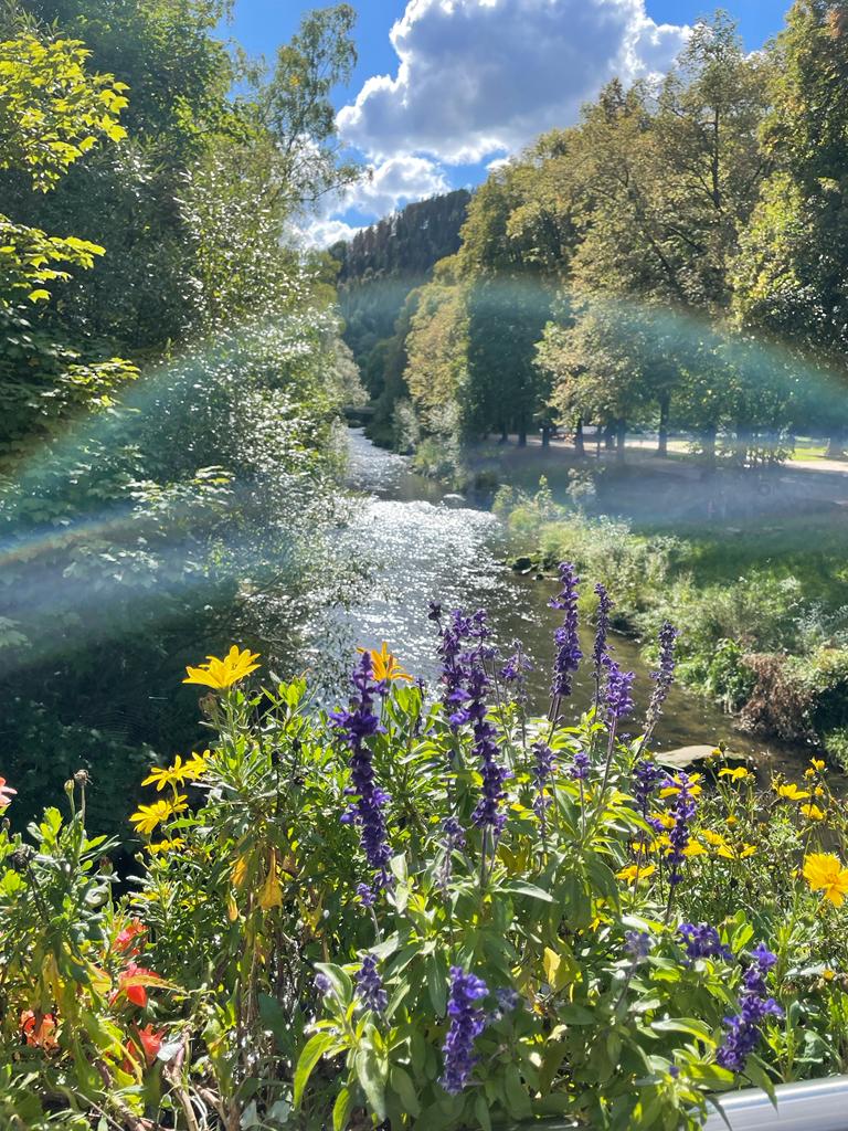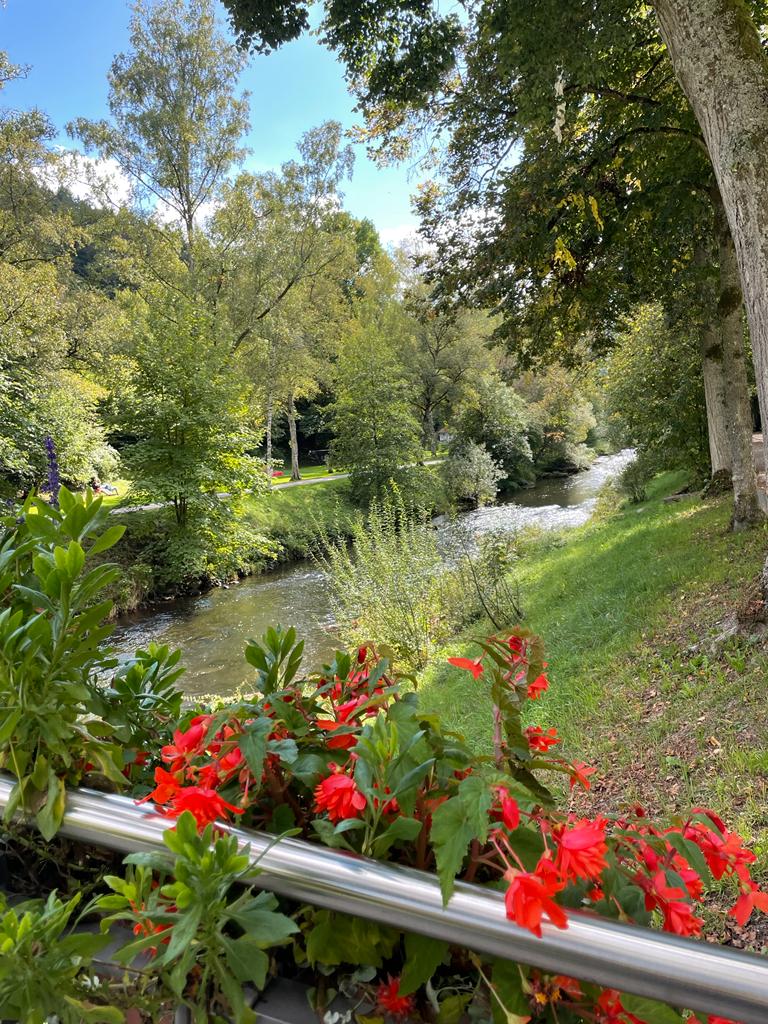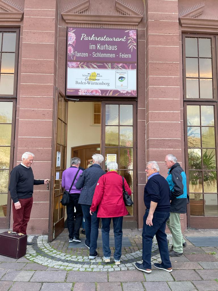 Bei wunderbarem Wetter ging es dann zu Fuß zum Kurhaus, wo bereits Tische für uns reserviert waren. Nach einem sehr guten Mittagessen schlenderten wir noch durch den wunderschönen Kurpark und einige auch noch durch den fast noch schöneren SOPHI PARK. Die Parks sind idyllisch an der Nagold gelegen mit Blick auf die dunklen Höhen des Schwarzwaldes.