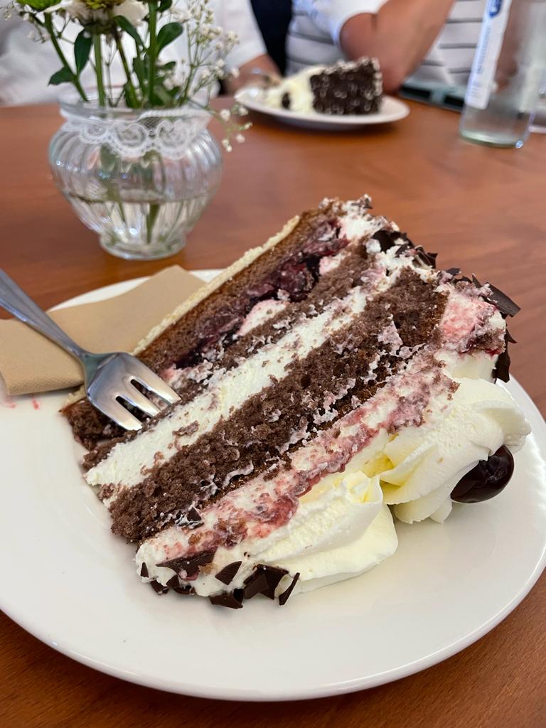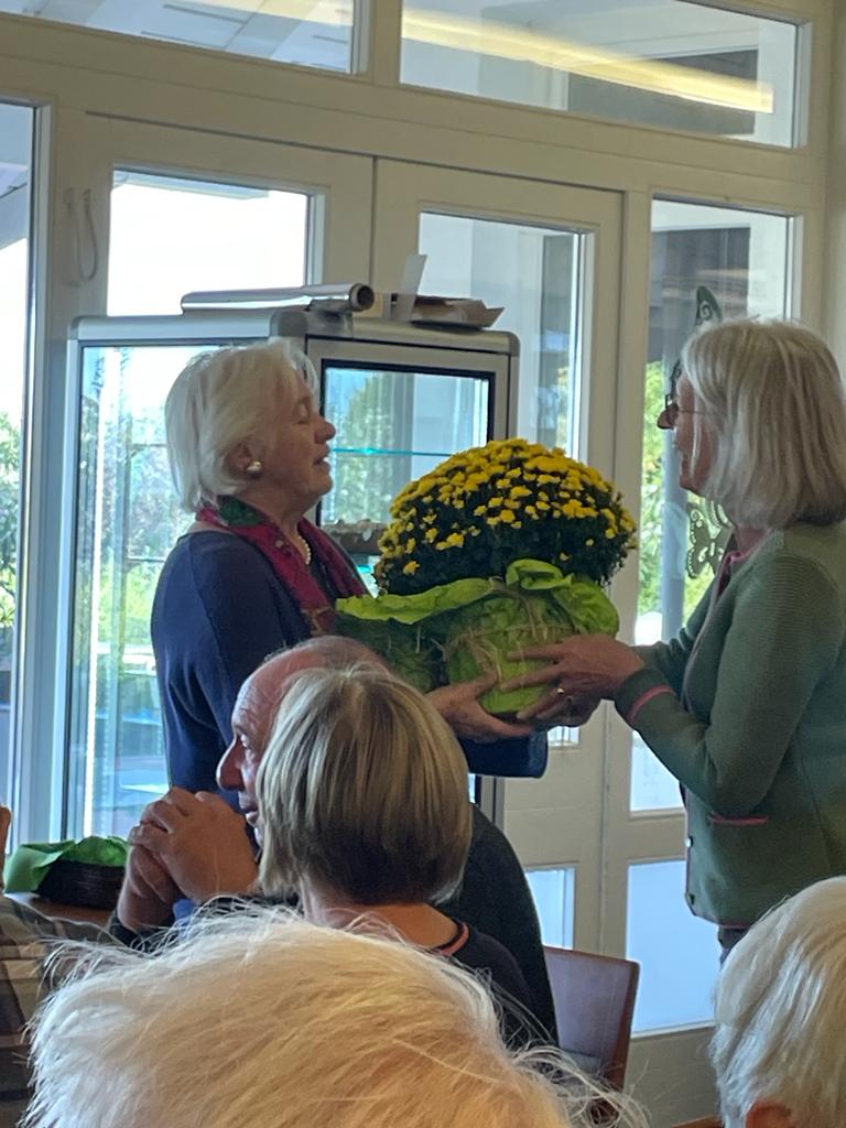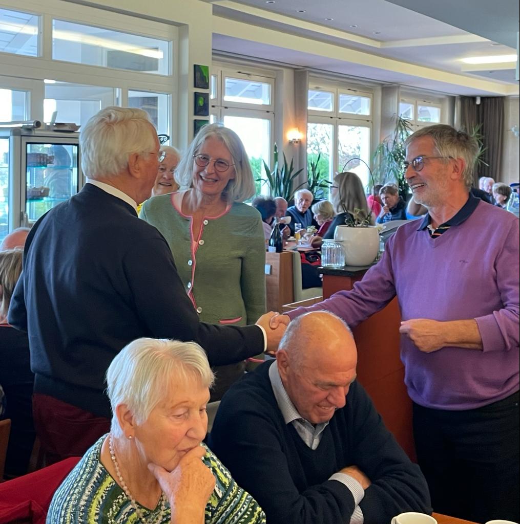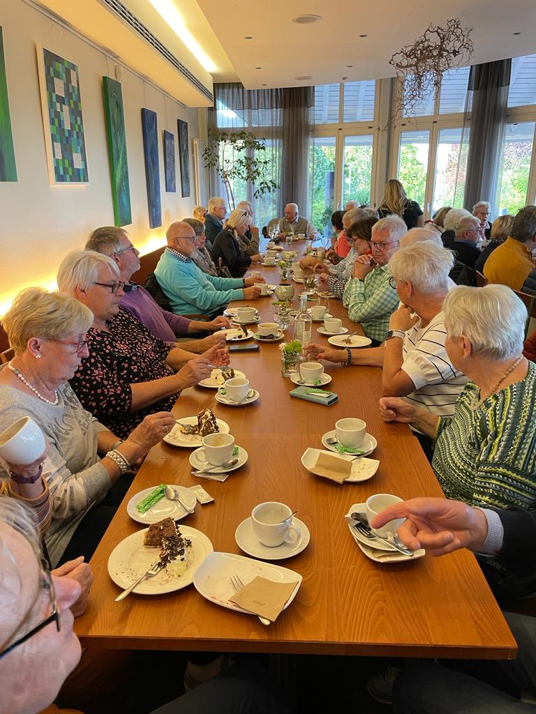 Nach diesem Spaziergang machten wir uns auf zum Golfclub von Bad Liebenzell, wo wir uns dann im Clubhaus zur Kaffeetafel niederließen. Herr Schiek hatten den Golfclub vor 34 Jahren gegründet und war 10 Jahre lang dessen Präsident. Es gab viele verschiedene Kuchen, u.a. eine köstliche Schwarzwälder Kirschtorte, auf die sich viele gefreut hatten.
