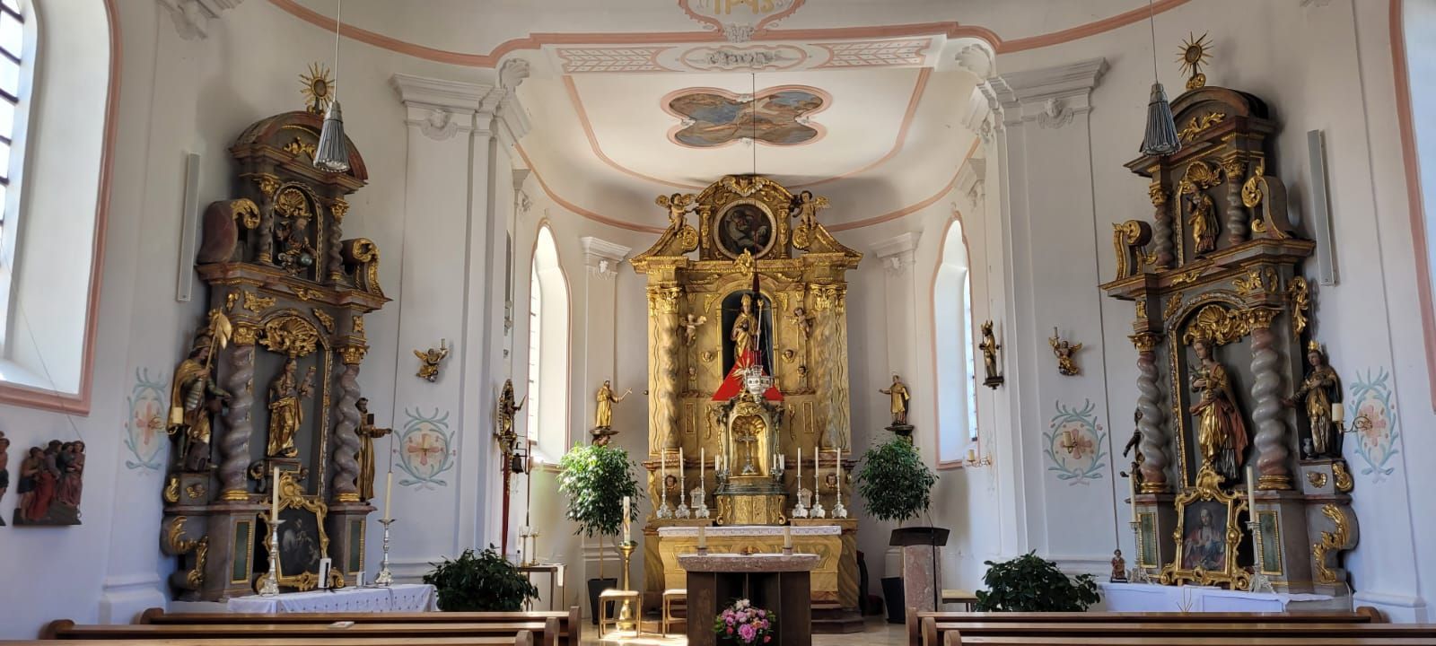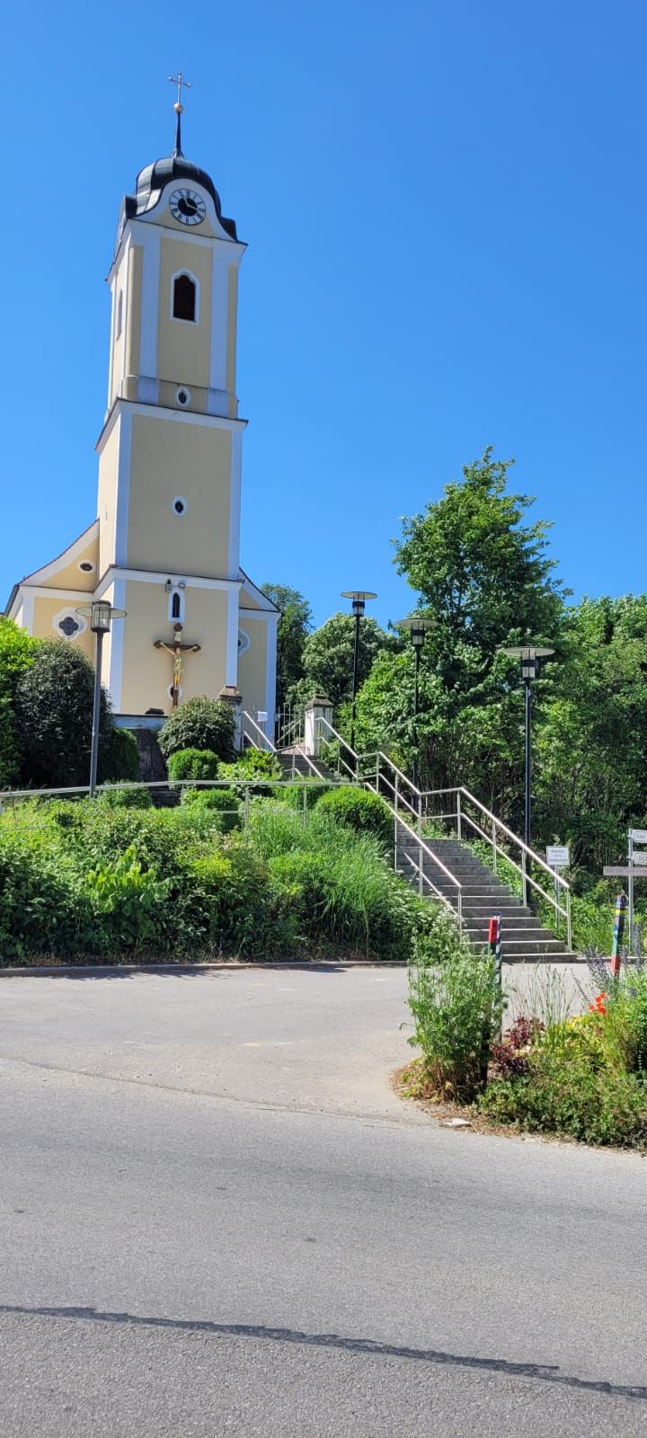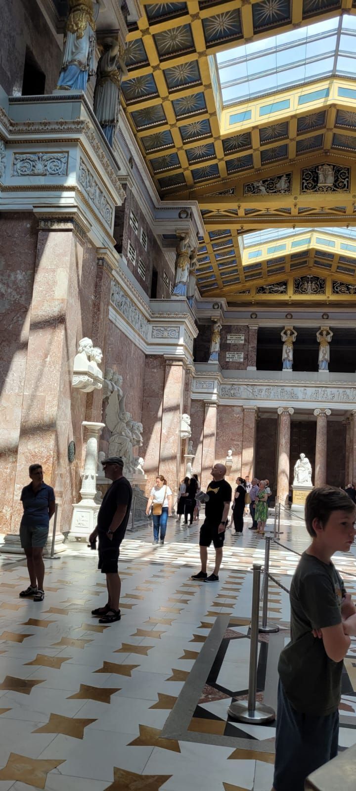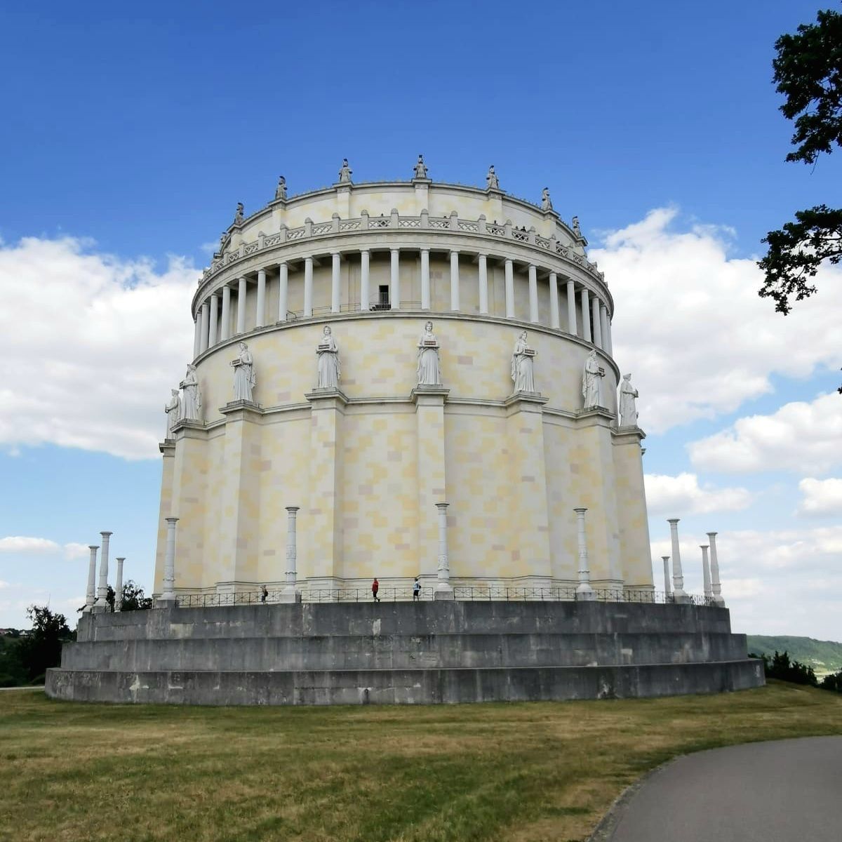 Ein weiterer Besichtigungspunkt am 11.6. war die Befreiungshalle über Kehlheim, gigantische Maße, hoch über der Donau und mit einem tollen Ausblick auf den Donaudurchbruch. Es war ein kleiner Fußweg bis dorthin. Diejenigen, die nicht gut zu Fuß waren, setzen sich unter einen der schattigen Bäume auf Bänke, der andere Teil ging die 84 Außenstufen hoch bis zur Innenbesichtigung der Halle. Eine nächste Gruppe schaffte auch die restlichen 165 Stufen bis zur obersten Galerie und konnte einen weiten Rundblick über die Umgebung genießen.