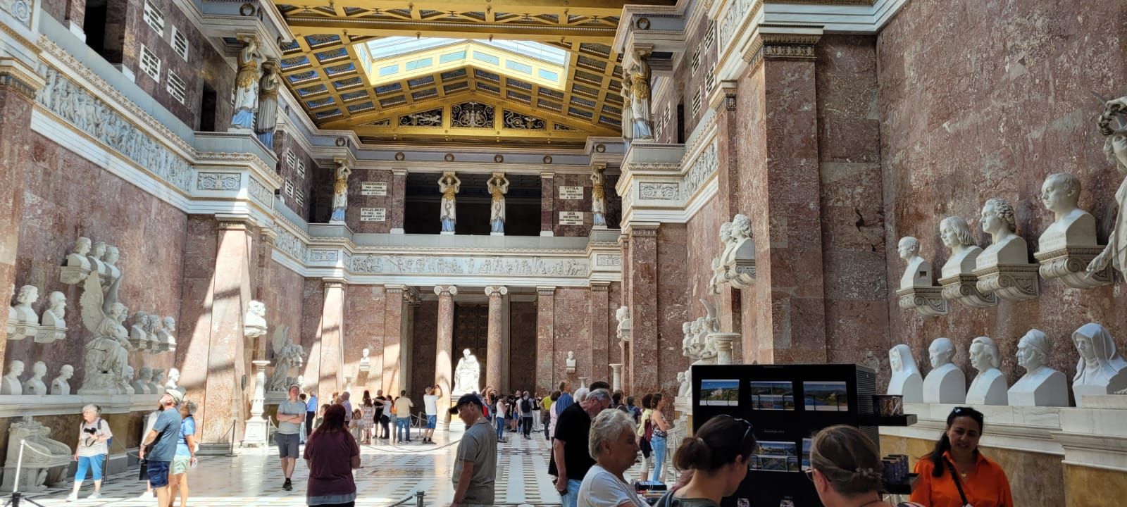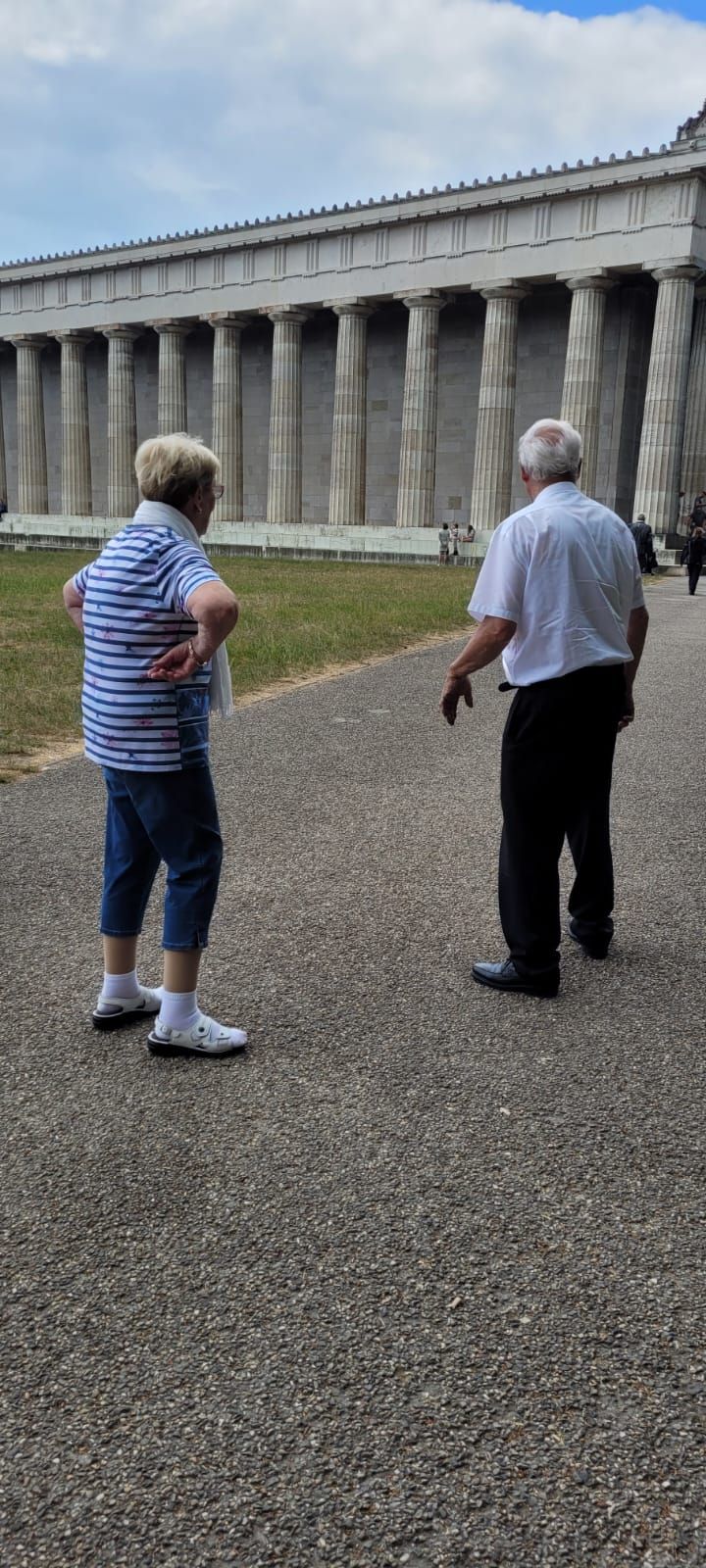 Und weiter ging es mit dem Reisebus Richtung Regensburg, wo wir hoch über der Donau von weitem schon die Walhalla sahen. Wir machten dort Rast und diejenigen, die die kurze Strecke zur Walhalla hochlaufen konnten, besichtigen das imposante Gebäude und genossen den herrlichen Ausblick.