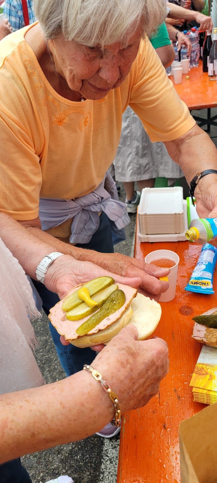 Währenddessen hatte das Essensteam bereits das Veper vorbereitet. Es gab Fleischkäse oder Käse im Brötchen mit Gurke.