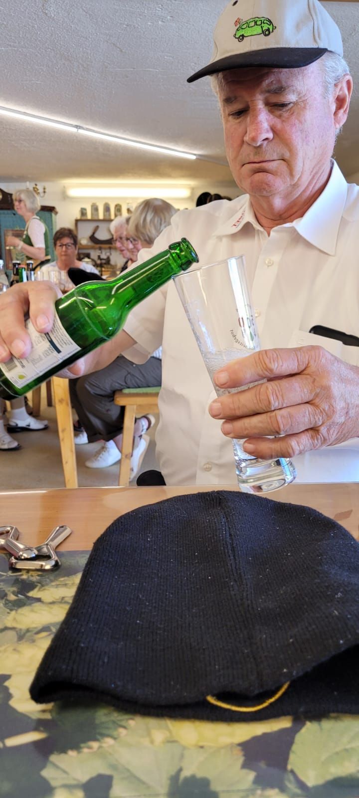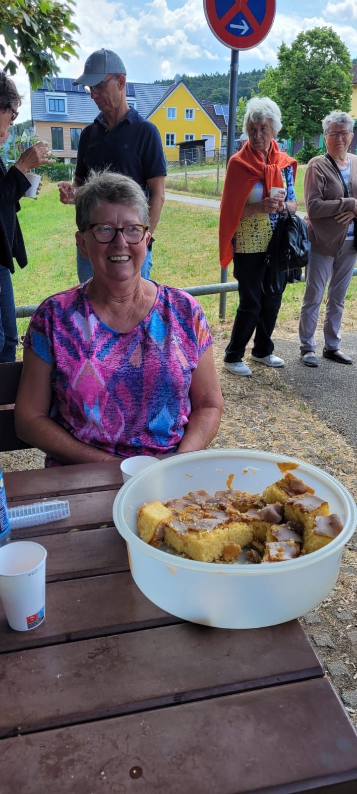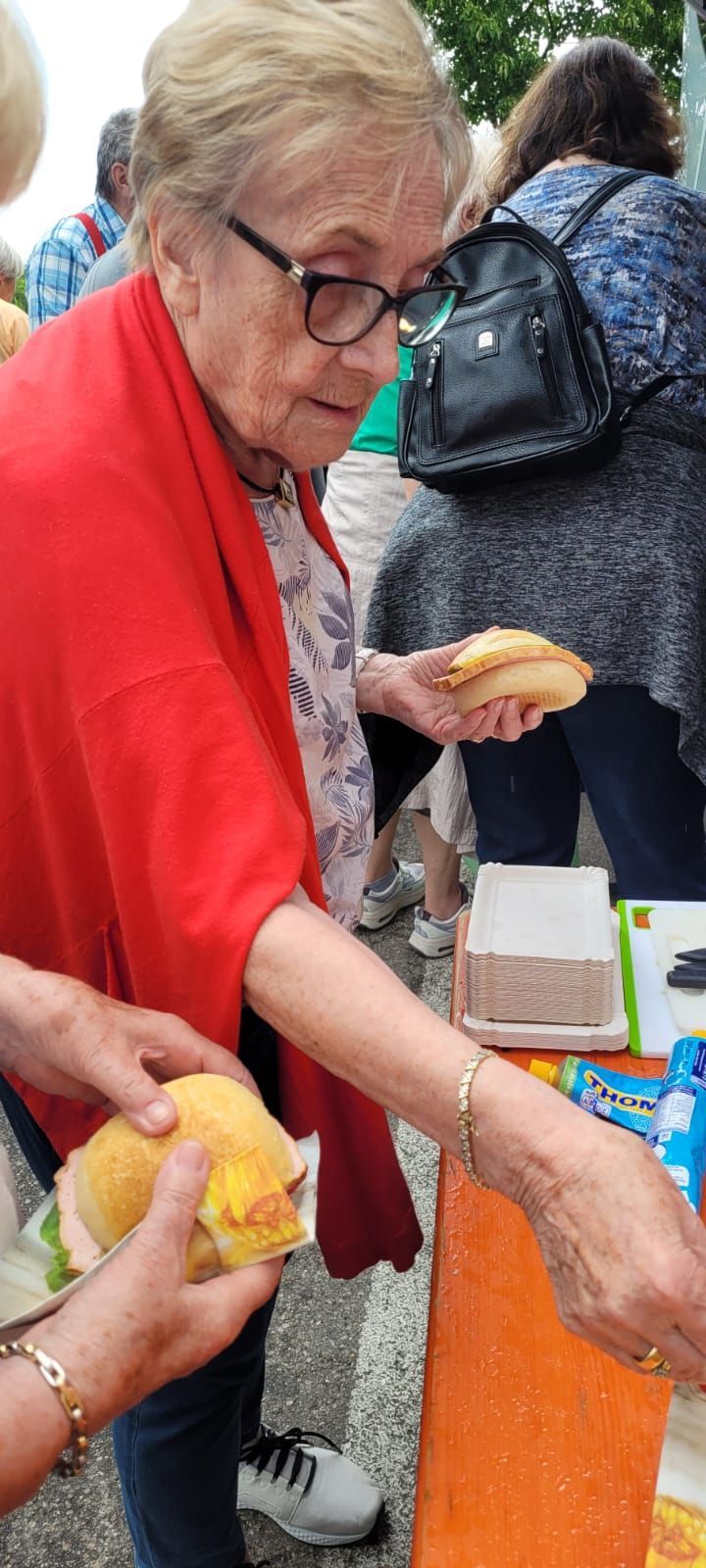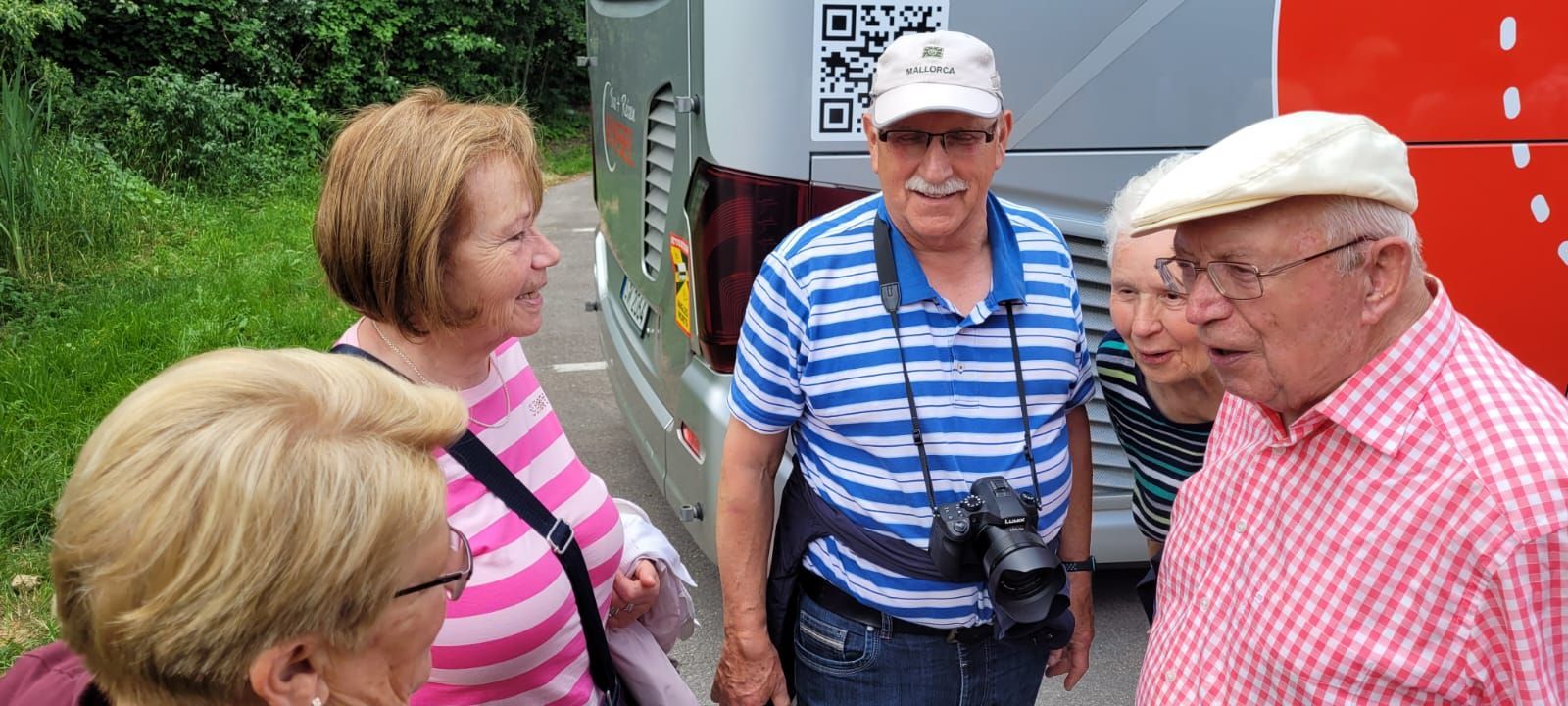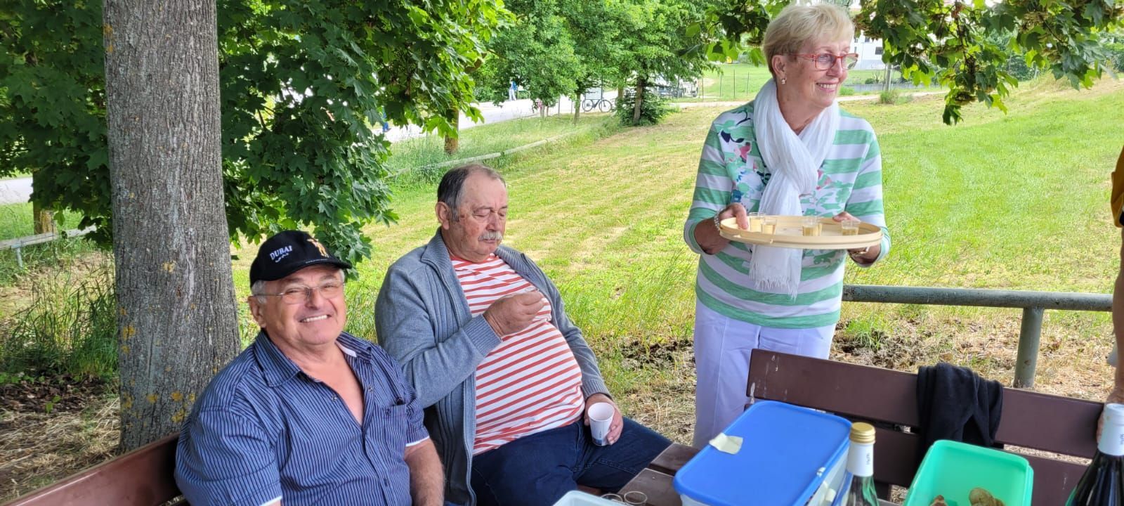 Pünktlich um 7 Uhr starteten wir am 10.6.2023 zu unserer Tour und durften dann gleich während der Kaffeepause das Glas zu Ehren eines Ausschussmitglieds erheben, der an diesem Tag Geburtstag hatte. Eine Familie spendierte den Mohnkuchen, eine andere den Hefezopf und dazu gab es einen feinen Rosé Secco. So fängt eine Reise doch schon gut an.