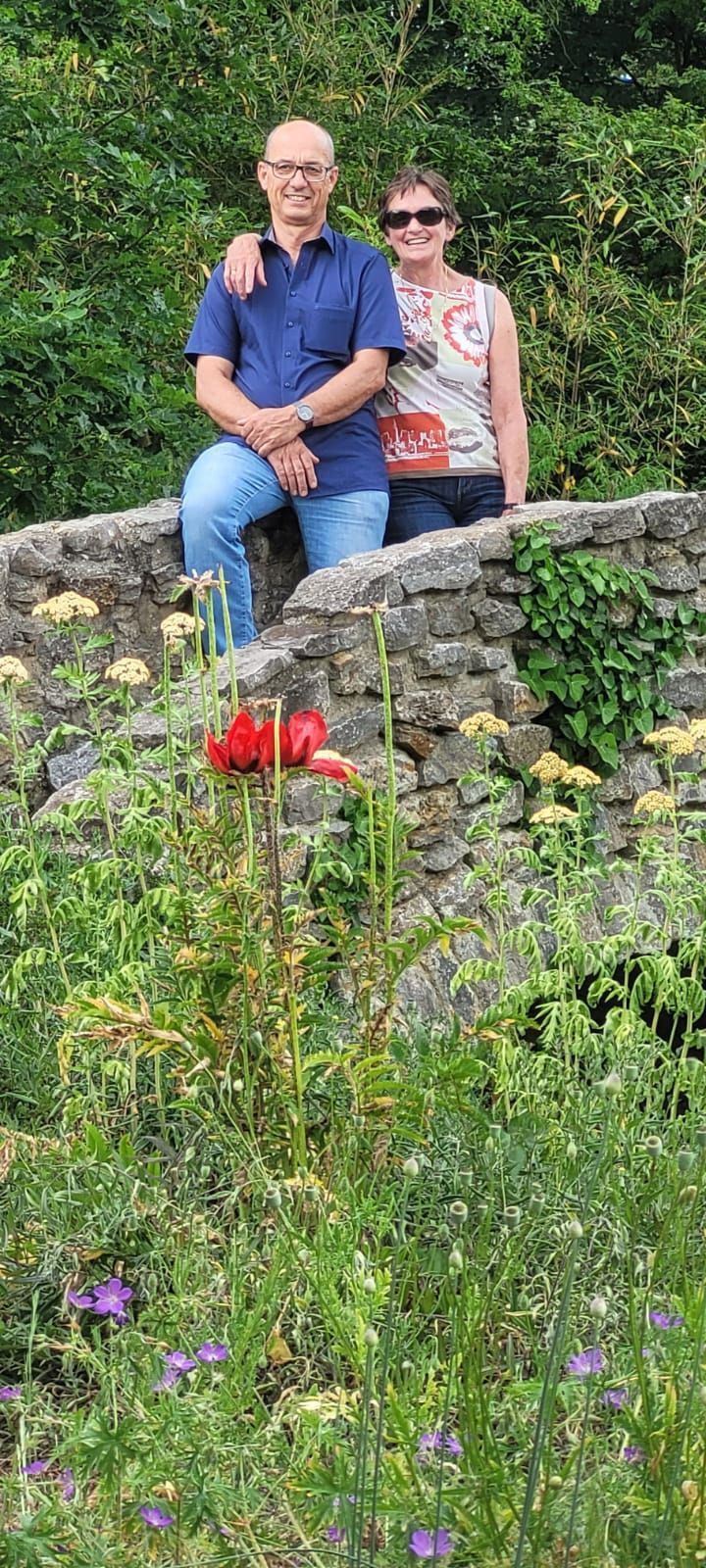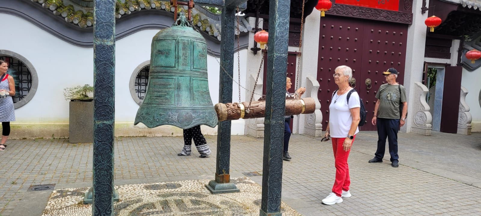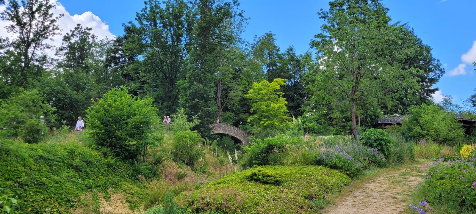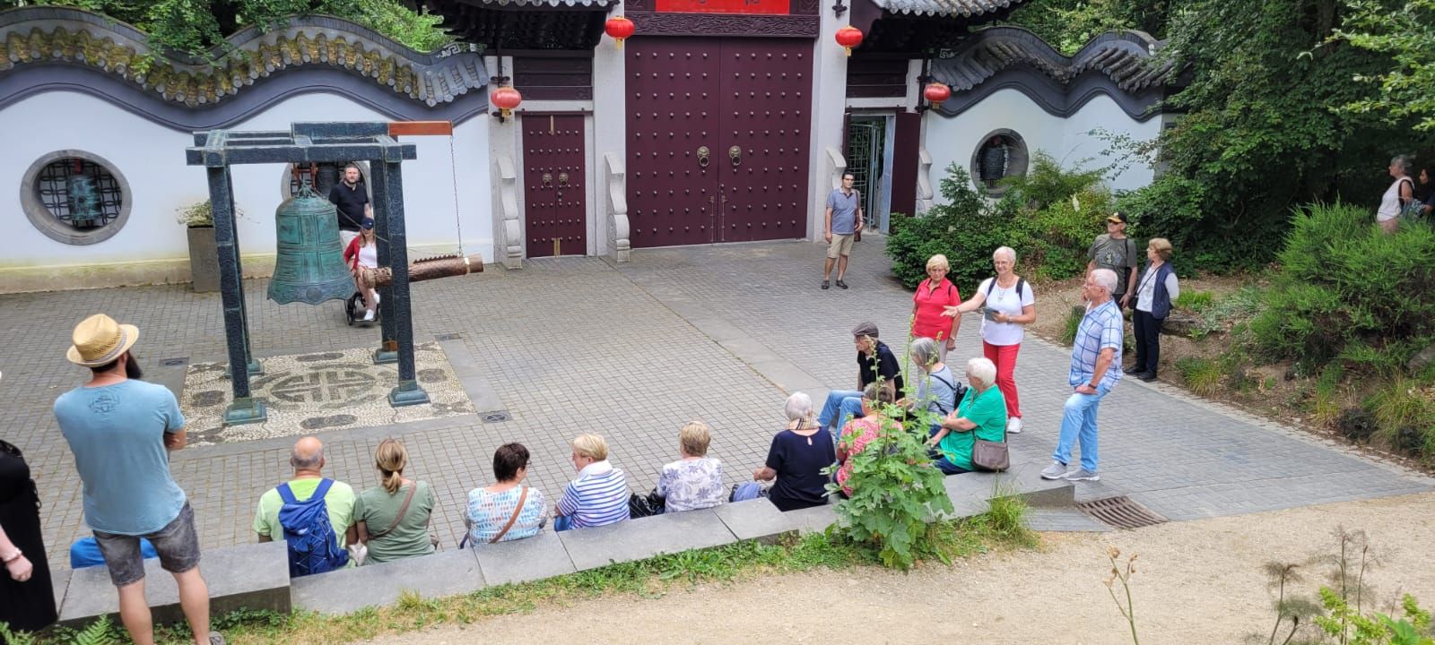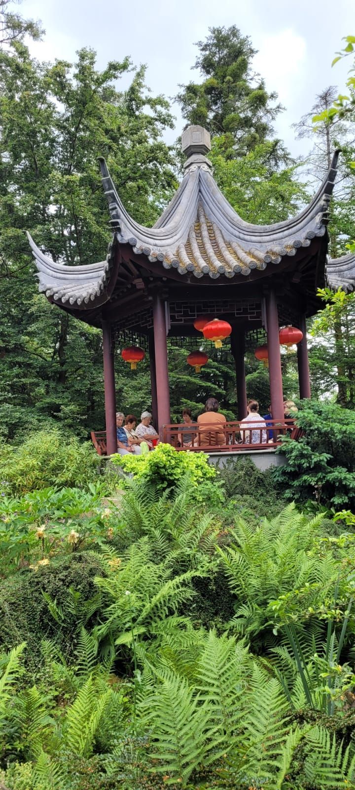 Gestärkt durch das herzhafte Vesper fuhren wir weiter zum Nepal Himalaya Park in Wiesent. Inmitten einer 9 ha großen Fläche steht der original nepalesische Tempel. Dies war Nepals Landesbeitrag zur Expo2000. Er war in Einzelteile zerlegt und seit 2003 in Wiesent wieder zu besuchen, eingebettet in einen spannenden und artenreichen Staudenpark, gepaart mit vielen asiatischen Kunstwerken. Sehr beeindruckend. Das Wetter wurde zunehmend sonniger und wärmer und der schattenreiche Park war ideal, um nach der Fahrt etwas Bewegung zu bekommen und die herrliche Pflanzenwelt zu bestaunen.