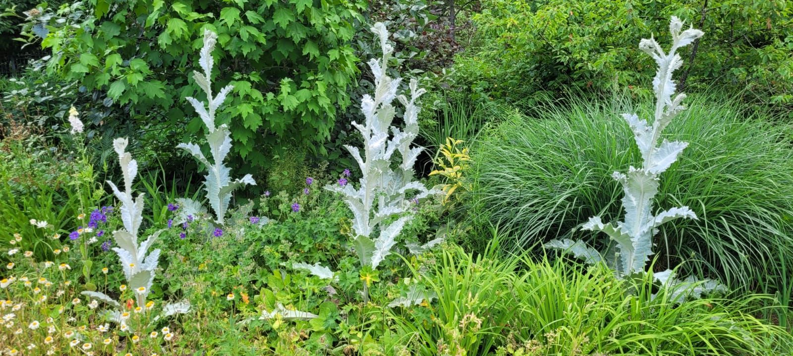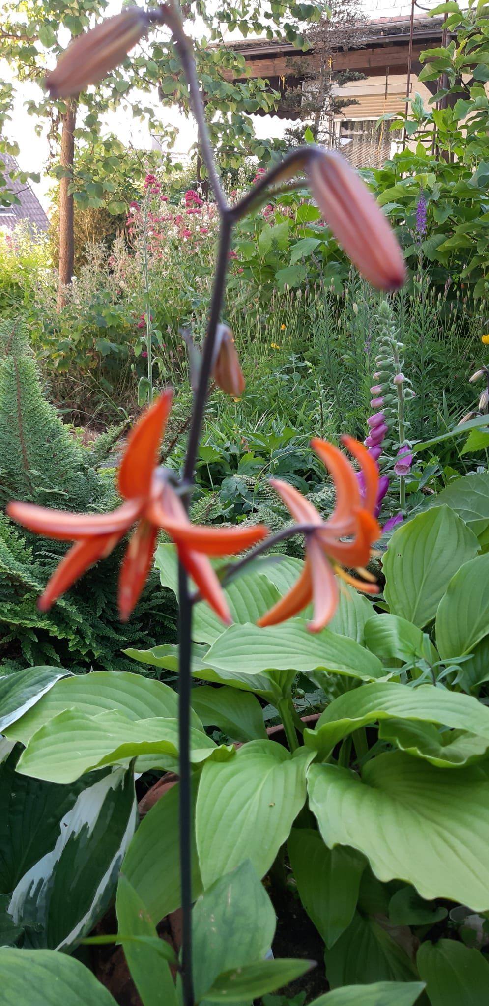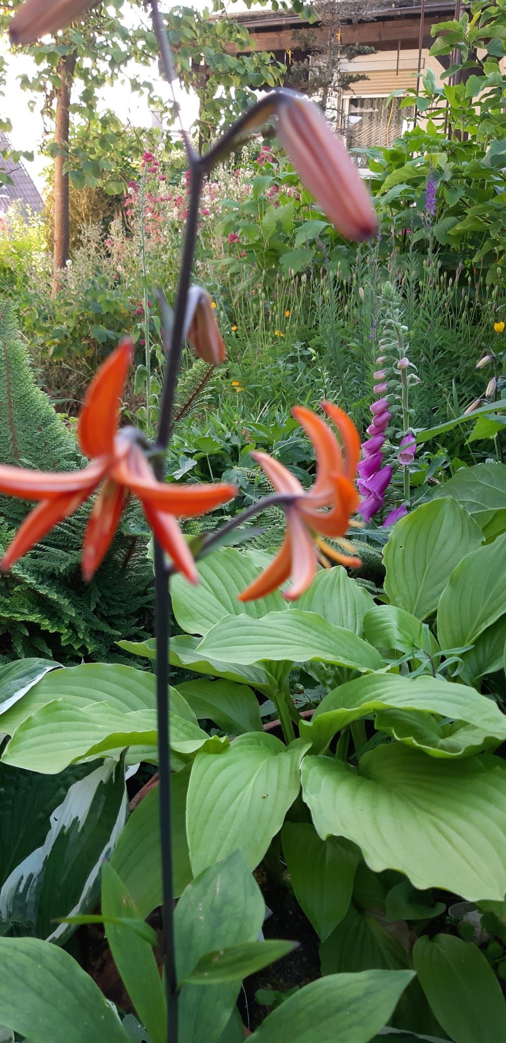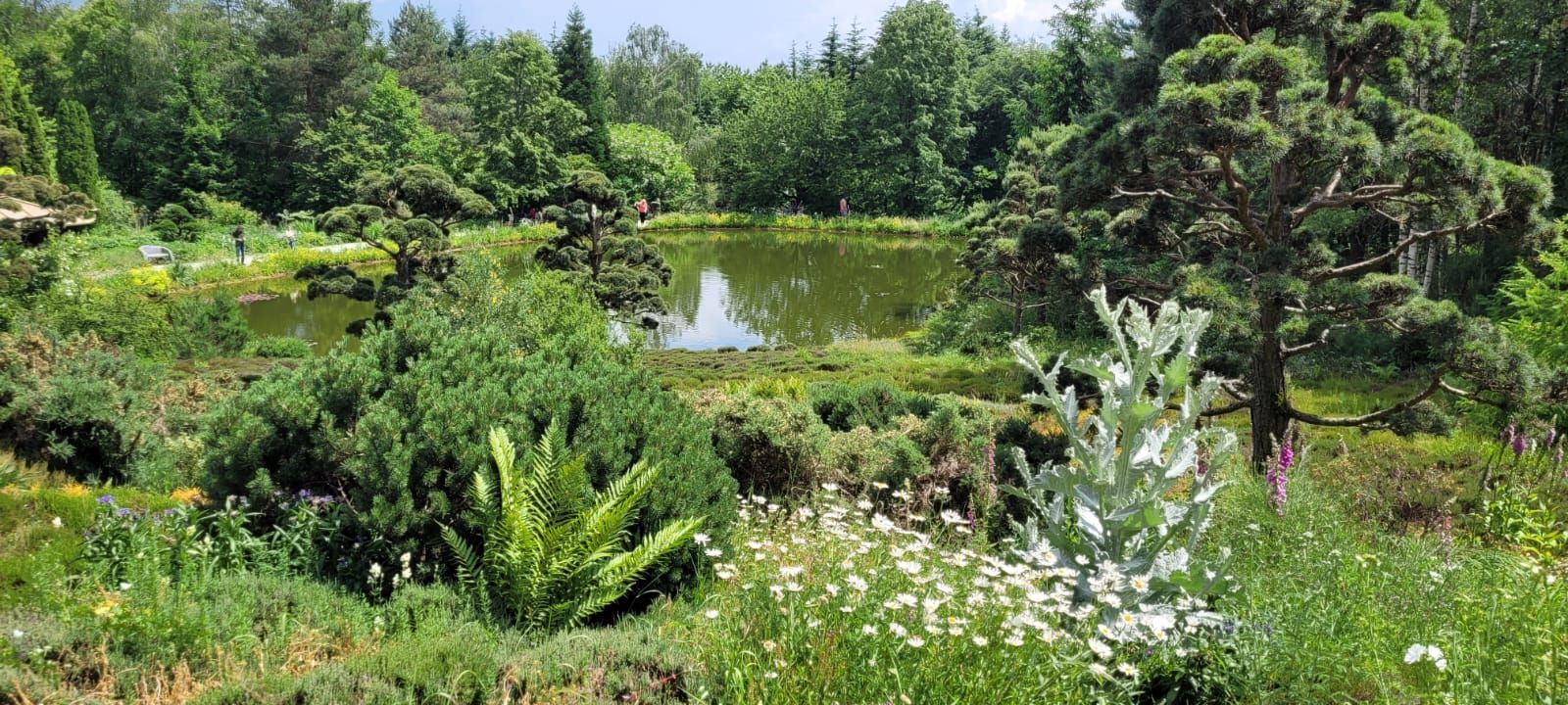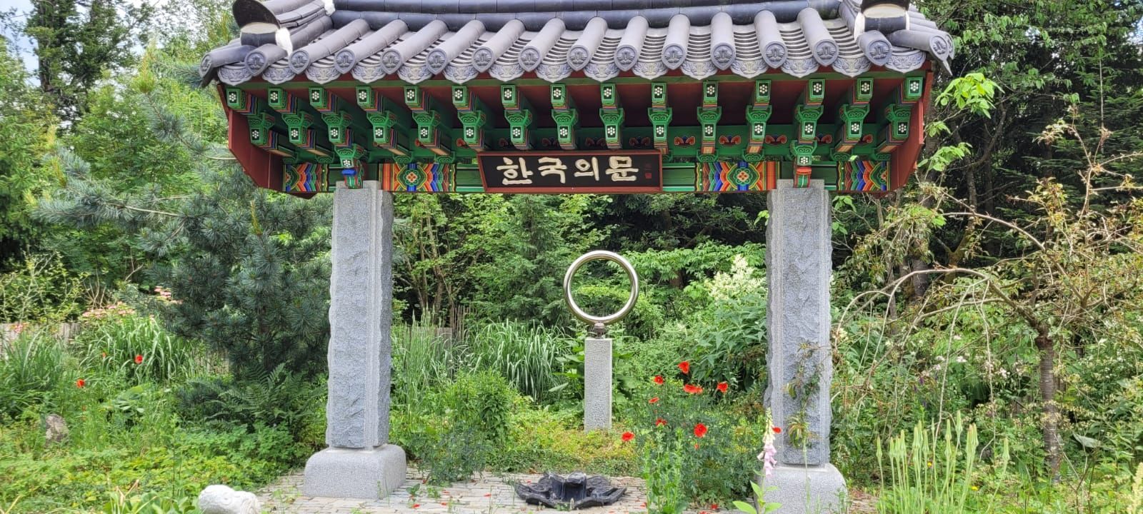Gestärkt durch das herzhafte Vesper fuhren wir weiter zum Nepal Himalaya Park in Wiesent. Inmitten einer 9 ha großen Fläche steht der original nepalesische Tempel. Dies war Nepals Landesbeitrag zur Expo2000. Er war in Einzelteile zerlegt und seit 2003 in Wiesent wieder zu besuchen, eingebettet in einen spannenden und artenreichen Staudenpark, gepaart mit vielen asiatischen Kunstwerken. Sehr beeindruckend. Das Wetter wurde zunehmend sonniger und wärmer und der schattenreiche Park war ideal, um nach der Fahrt etwas Bewegung zu bekommen und die herrliche Pflanzenwelt zu bestaunen.