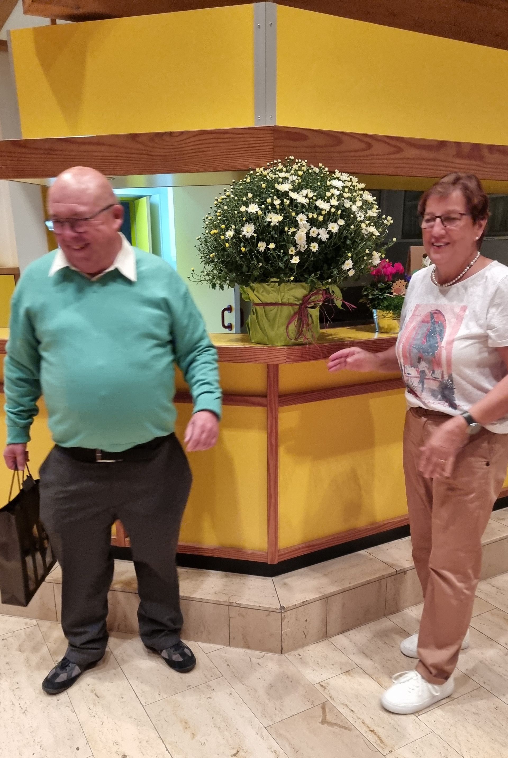 Der Vorstand des OGV Hochberg hatte beschlossen, dass Elfriede Fetzer zum Ehrenmitglied ernannt wird. Günter Heck würdigte Elfriedes Verdienste in einer Ansprache entsprechend und überreichte ihr unser kleines Präsent sowie eine herbstliche Blumenschale.