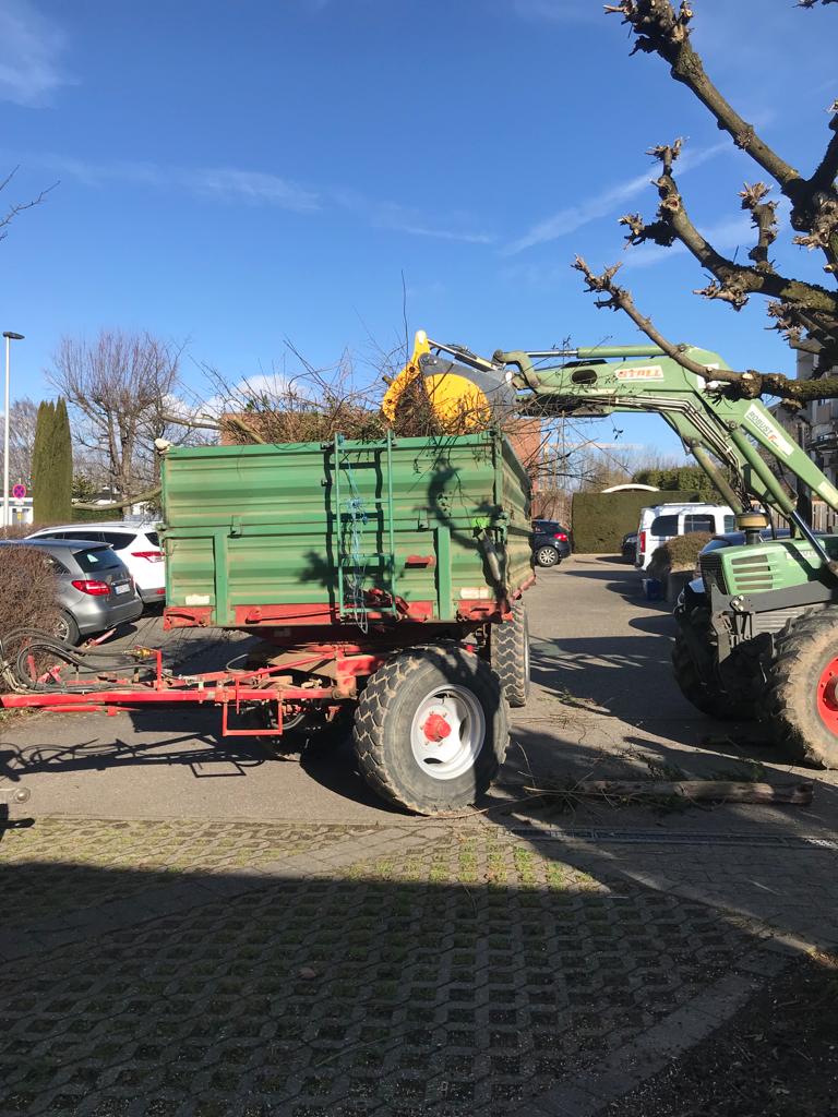 Es gab natürlich wie immer sehr viel zu tun. Dieses Mal bekamen wir aber Hilfe in Form eines Traktors, ein Frontlader mit einer Greifzange, der das Schnittgut in den bereitstehenden Anhänger transportierte. Das vereinfachte die Arbeit ungemein.