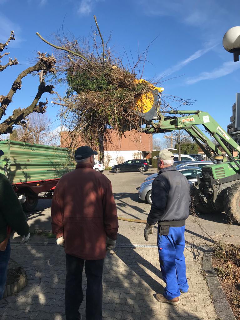 Baumschnitt beim ev. Gemeindehaus in Hochberg