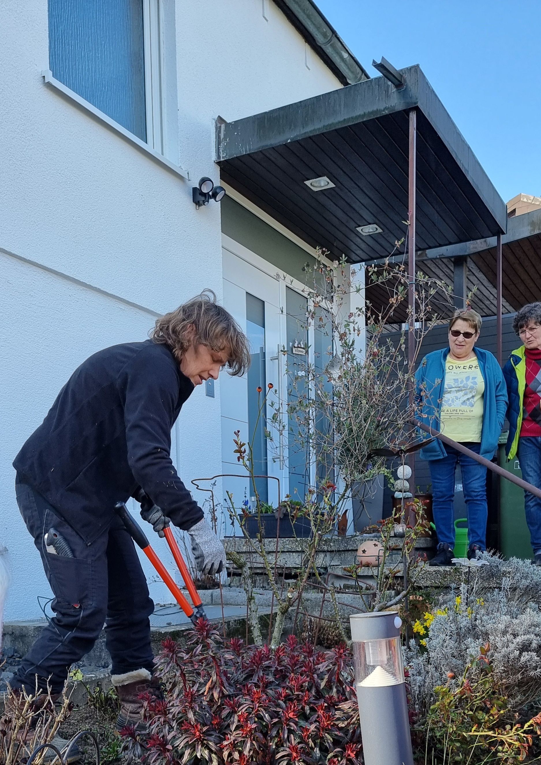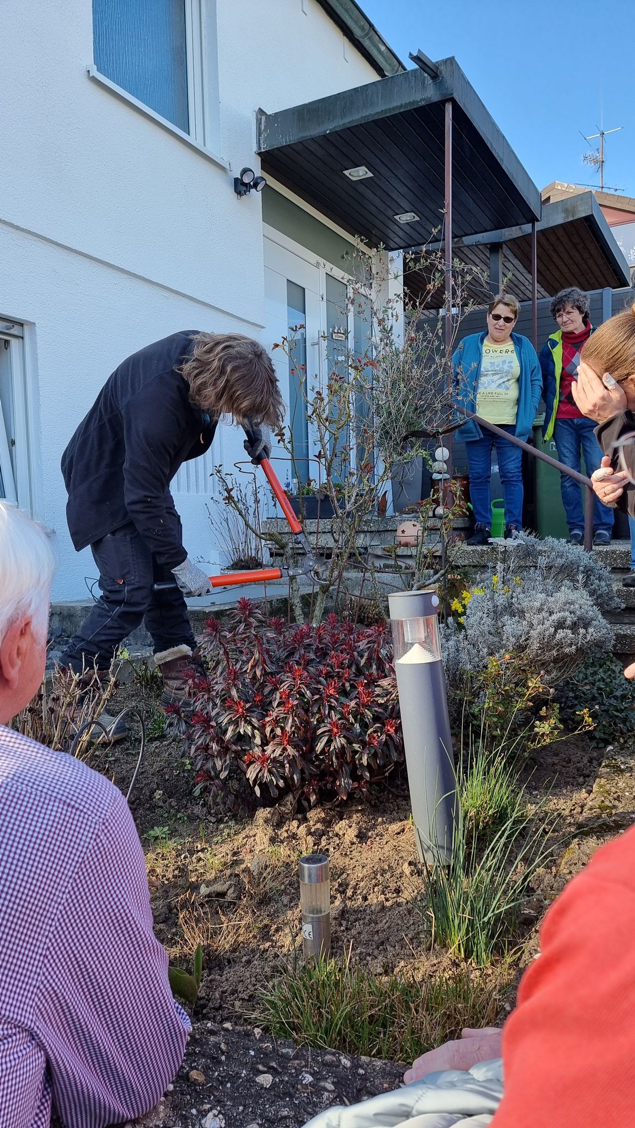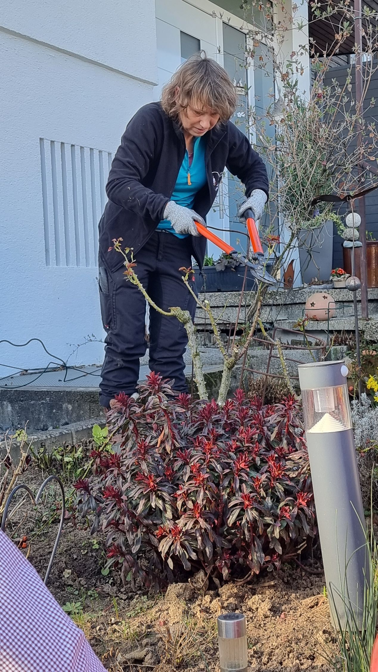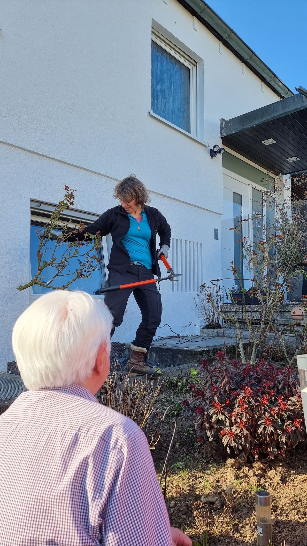 Natürlich gab es auch im Garten der Familie Keppler öfters ein tiefes Ein- und Durchatmen, als Frau Rist wie immer beherzt zum Schneidewerkzeug griff. Aber das Resultat wird sein, dass sich die Pflanzen wunderbar entwickeln werden.