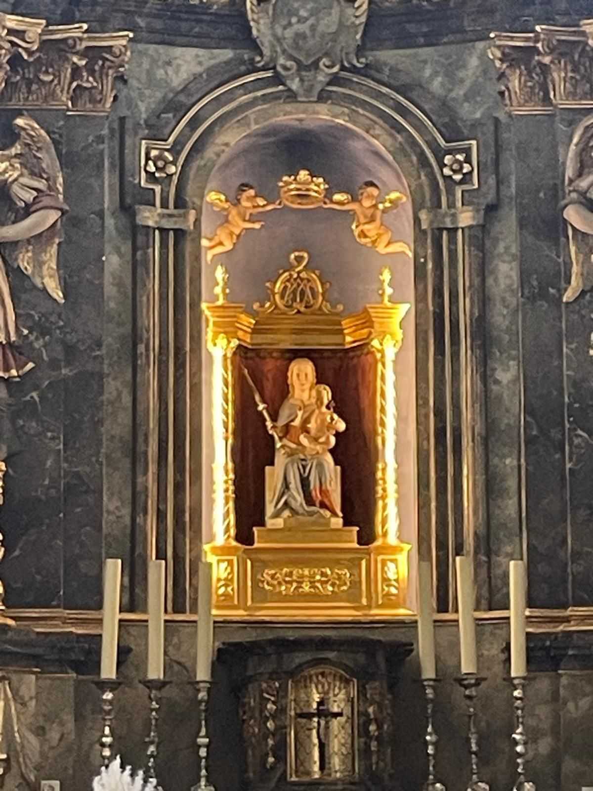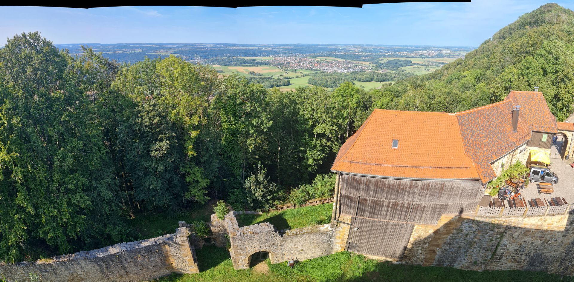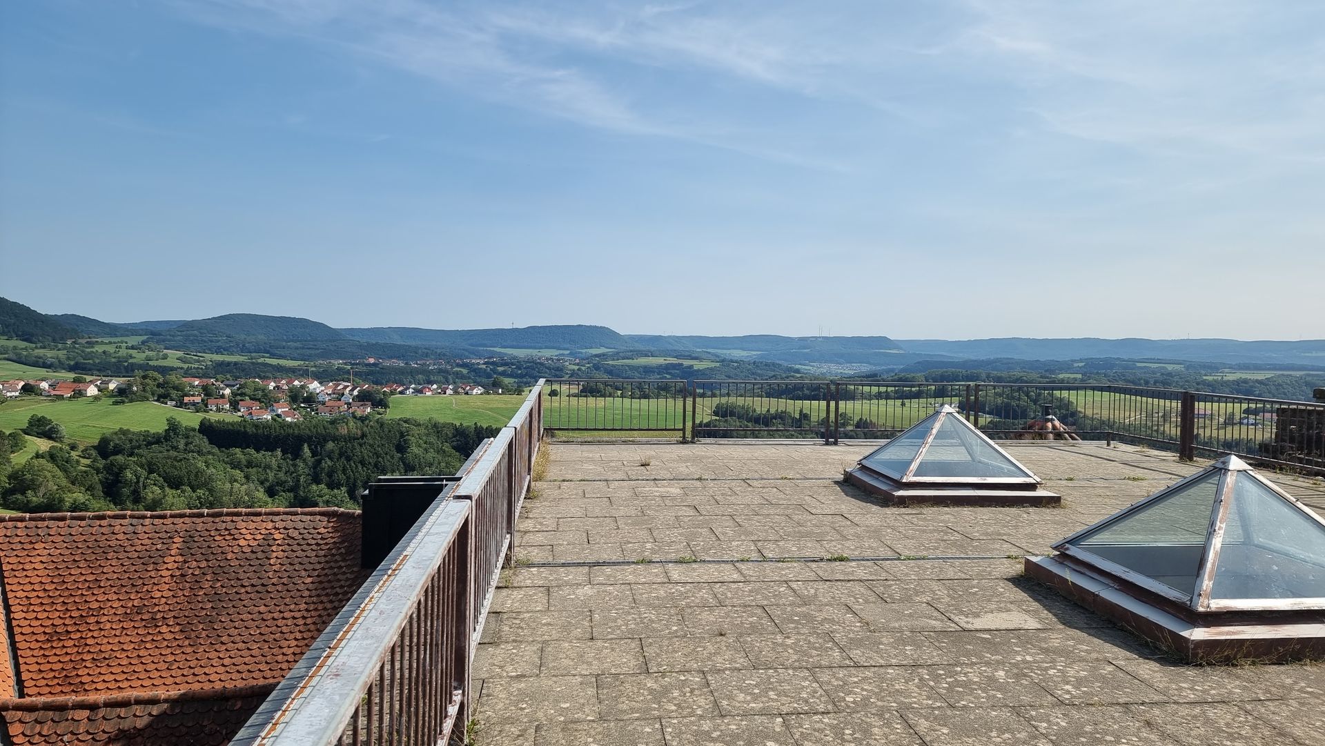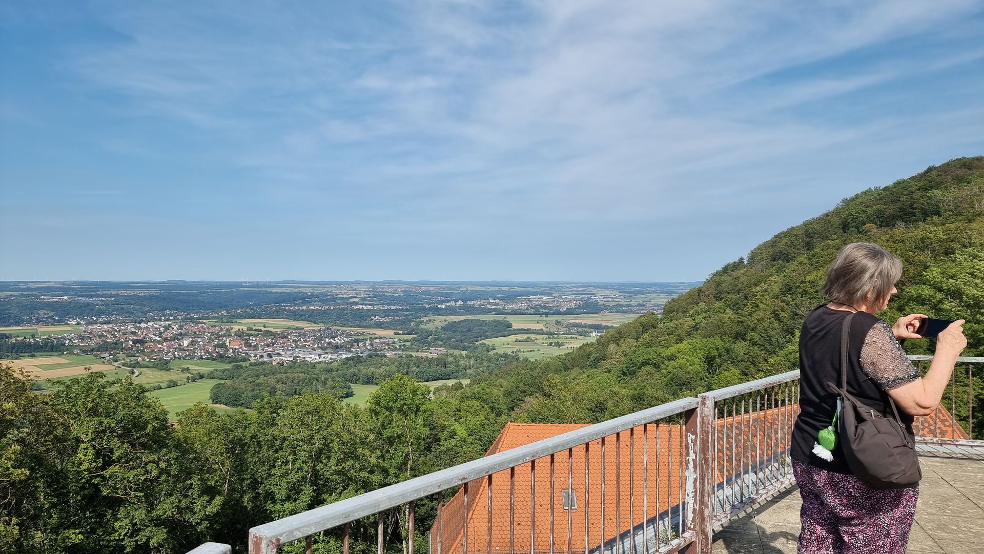 Danach machten wir uns Richtung Hohenrechberg auf, wo wir dann in einem Biergarten zünftig zu Mittag aßen. Gestärkt ging es dann bis zum Fuß des Hohenrechbergs, wo unser Bus parkte. Gemütlich machten wir uns an den „Aufstieg“ zur Burgruine und einige zu der noch höher gelegenen Wallfahrtskirche „zur Schönen Maria“.