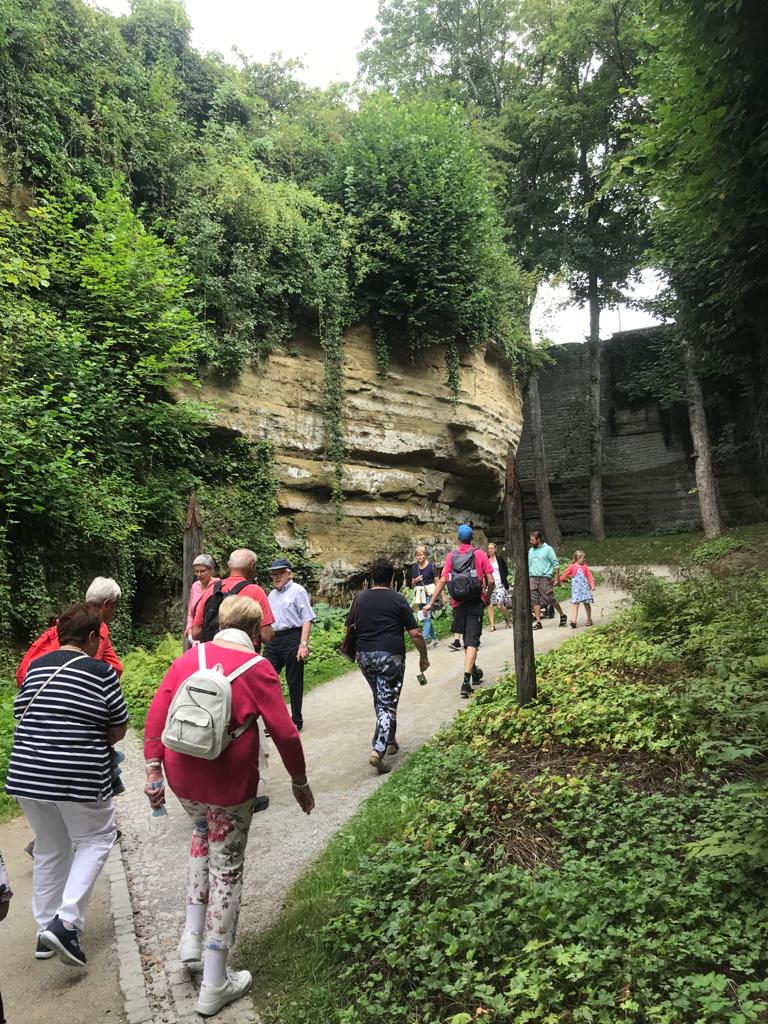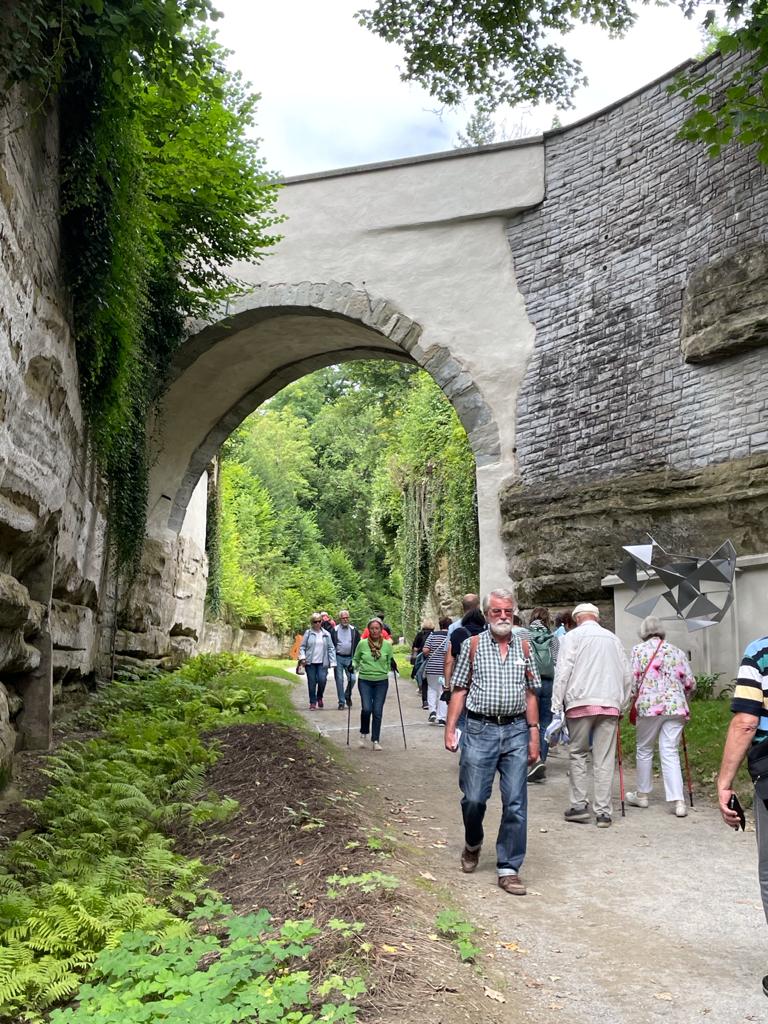 Vorbei an mittelalterlicher Stadtgrabenkulisse ging es durch den wildromantischen Blatterngraben, benannt nach den im Mittelalter dort unglücklich Eingesperrten, die so von der Stadtgesellschaft fern gehalten wurden, direkt über den Gartenteil mit 1200 Kakteen zum Uferbereich.