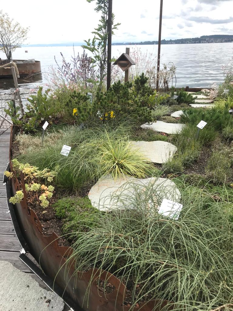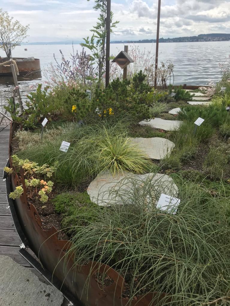Von hier aus ging es dann entlang des neugestalteten und der Öffentlichkeit zugänglichen Uferbereiches, bis in den hintersten Winkel. Mit Ausnahme des Strandbadebereichs und der Bodensee Therme wurde hier dafür gesorgt, dass die Besucher bis hin an die Wasserlinie gehen können. D.h. die alte Ufermauer wurde entfernt, die ehemalige Straße verlegt, und so eine Flaniermeile geschaffen, auf der sich Gartenschau und Bodensee wunderbar erleben lassen. Kurz vor der Silvesterkapelle endete dann unsere ausgezeichnete Führung. Der Rest des Tages war zur freien Verfügung.
