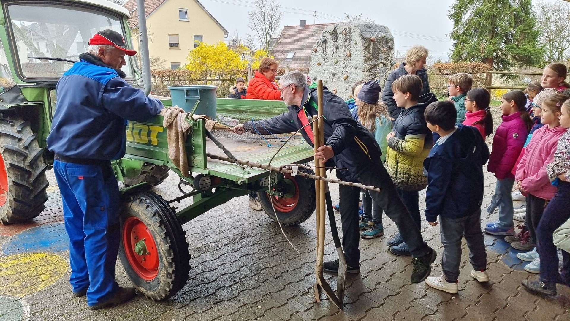 Anwesend waren u.a. Lehrkräfte der Grundschule Hochberg sowie Schüler und Schülerinnen der Klasse 3, die Herrn Fetzer tatkräftig bei der Pflanzung des Apfelbaums unterstützen. Herr Münsch richtete dann ein paar Worte an die anwesenden Schüler und Schülerinnen und hielt sie an, gut für den Apfelbaum zu sorgen.