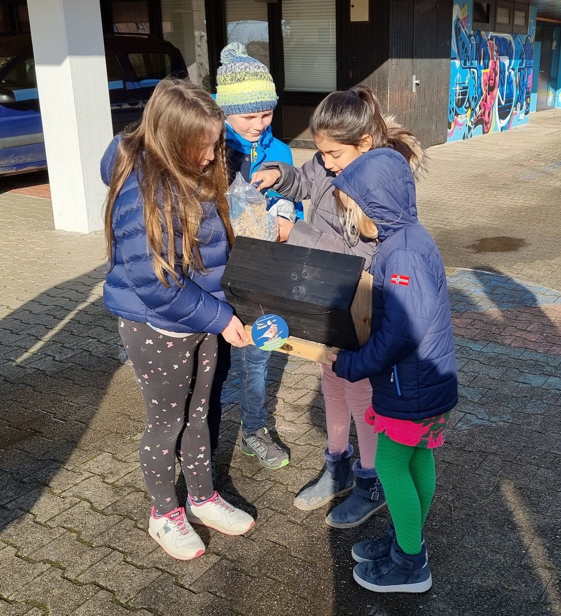 Und so konnten wir dann heute der Klasse eine Urkunde und ein wunderschönes Vogelfutterhaus des NABU überreichen, welches sie dann auch anschließend sofort mit dem entsprechenden Vogelfutter befüllen durften.