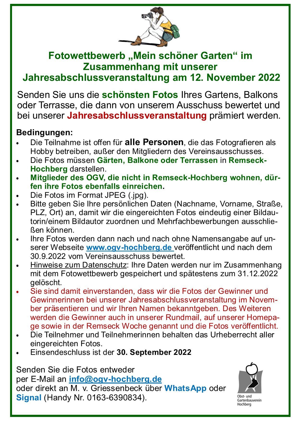 Sie können die Fotos natürlich an unsere Mail Adresse info@ogv-hochberg.de senden