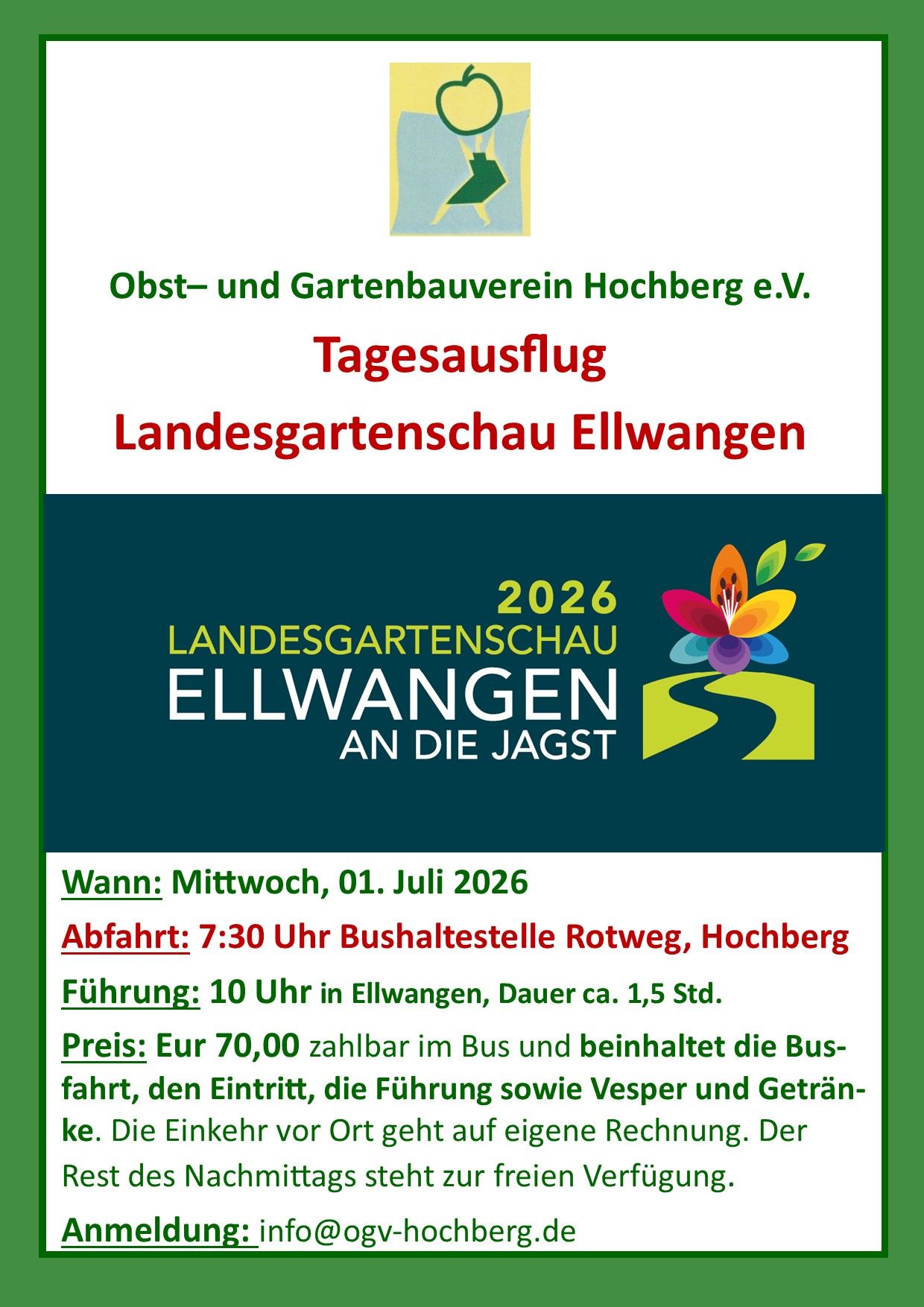 Und vielleicht möchten Sie ja auch regelmäßig über unsere Aktivitäten informiert werden. Dann melden Sie sich doch bitte bei info@ogv-hochberg.de, über WhatsApp oder rufen Sie einfach an und hinterlassen eine Nachricht (Monika v. Griessenbeck 0163-6390834).