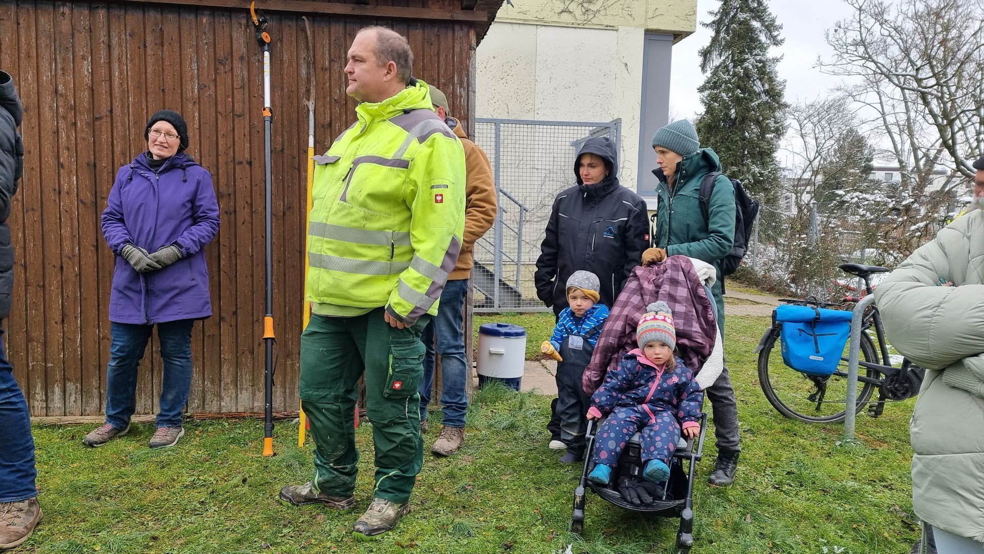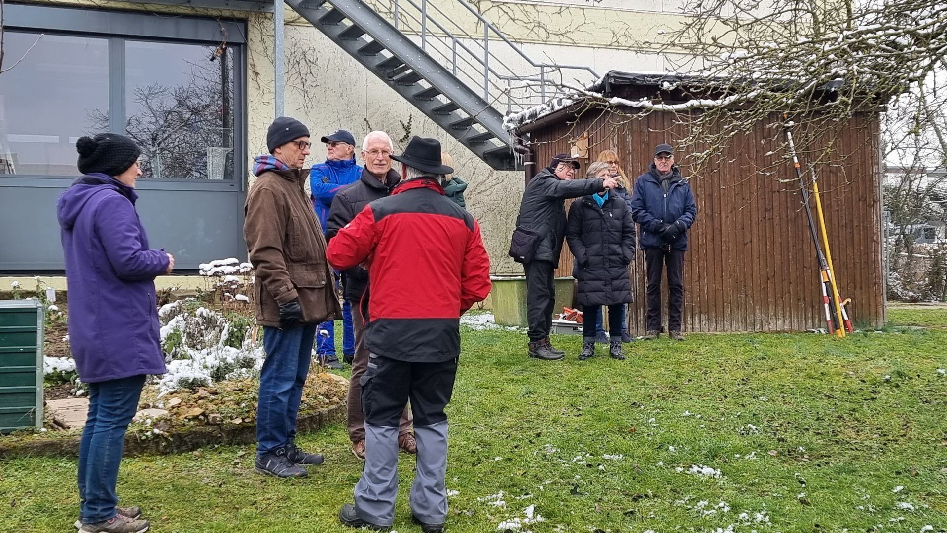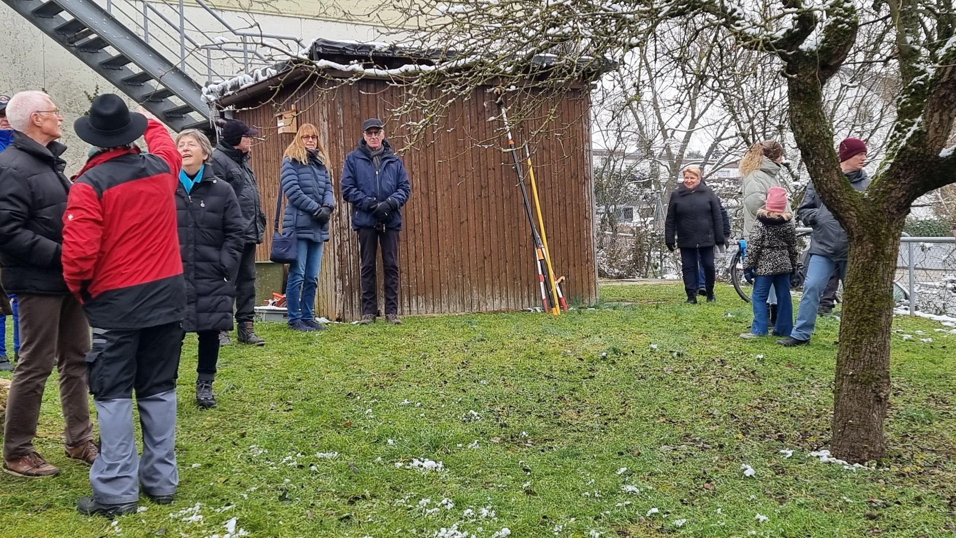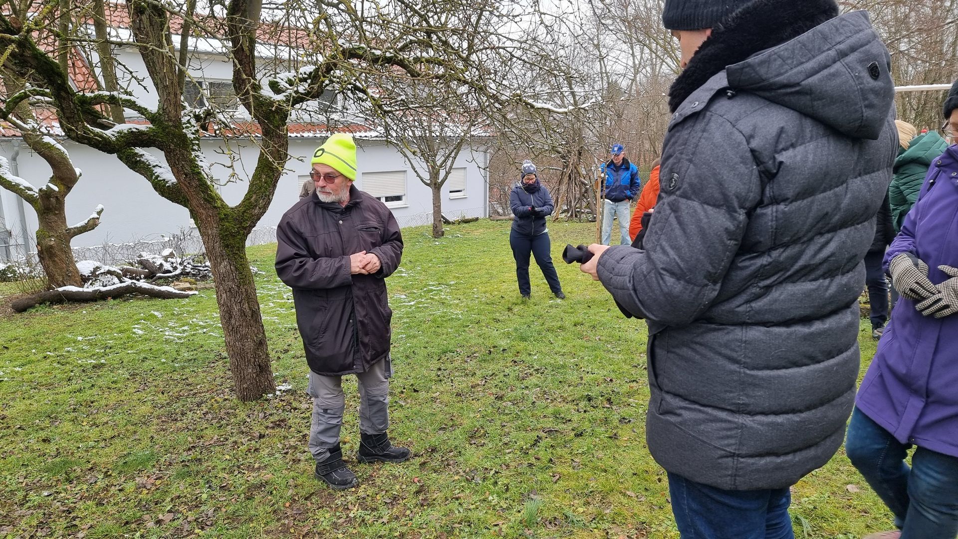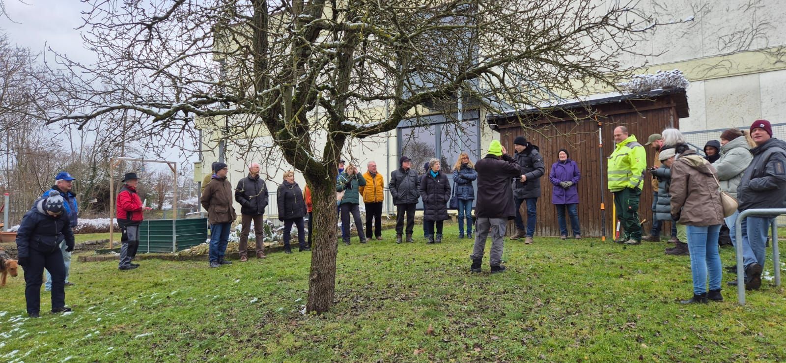 Um 14 Uhr trafen wir uns zu unserem jährlichen Obstbaumschnittkurs mit Herrn Weißbarth auf dem Gelände der Grundschule Hochberg. Diesen Schnittkurs hatten wir in Zusammenarbeit mit dem Förderverein der Grundschule Hochberg e.V. organisiert.