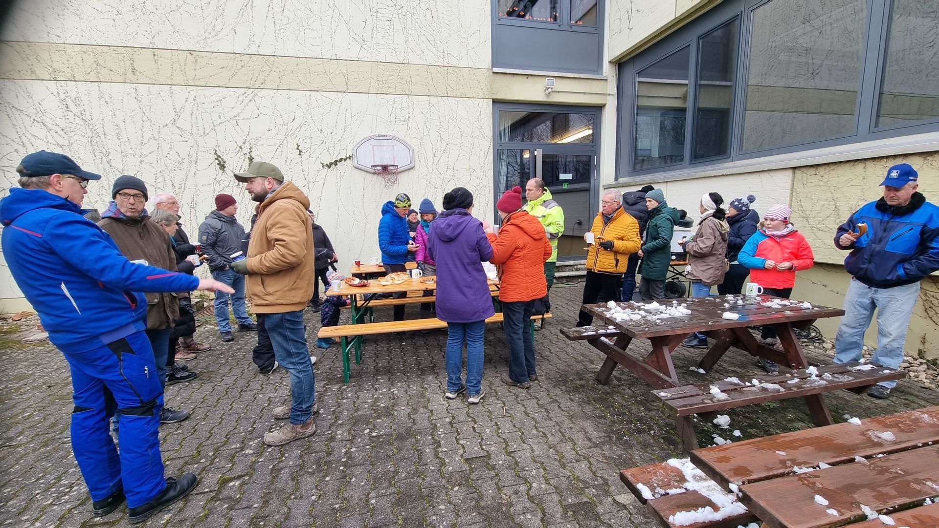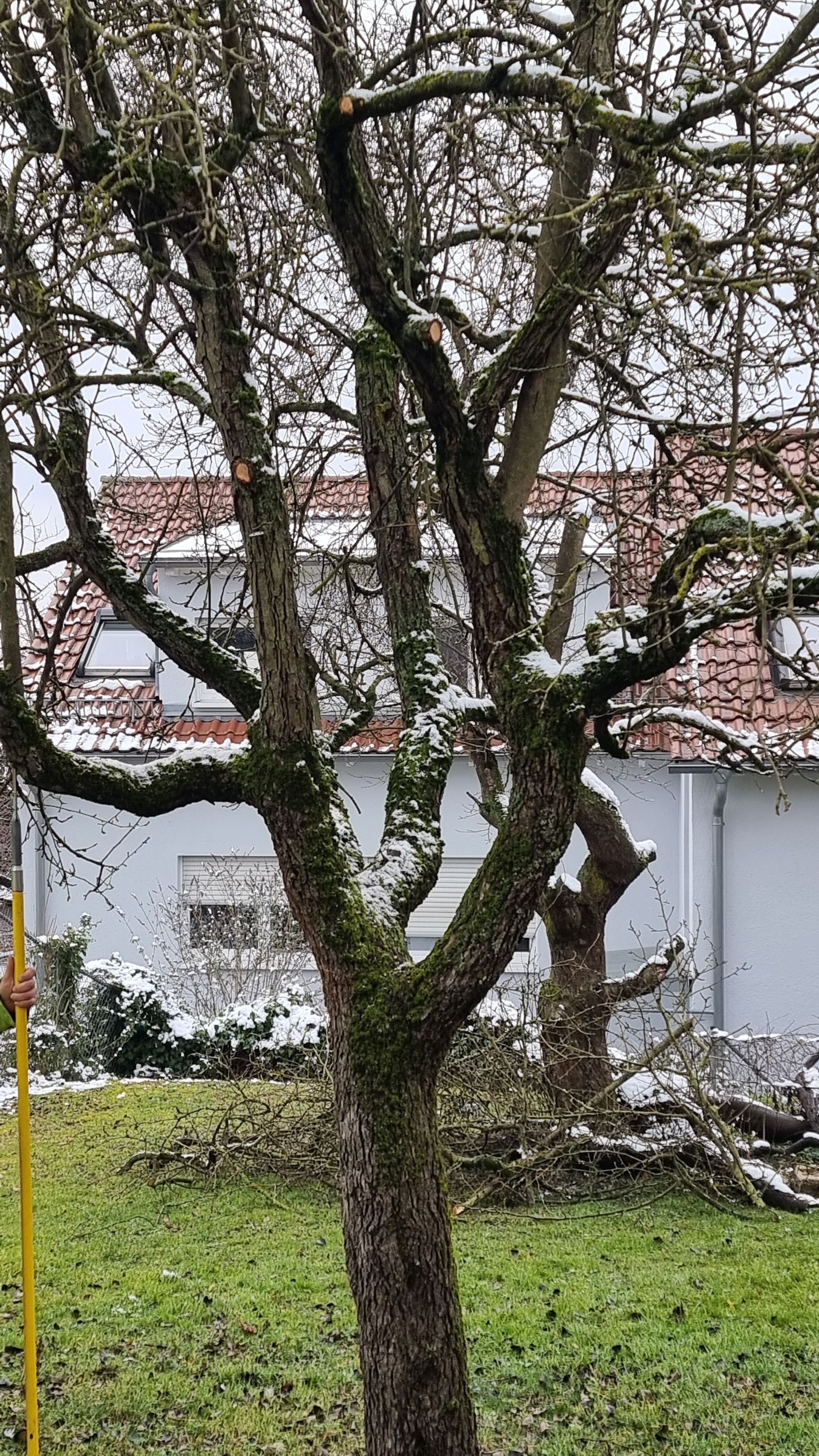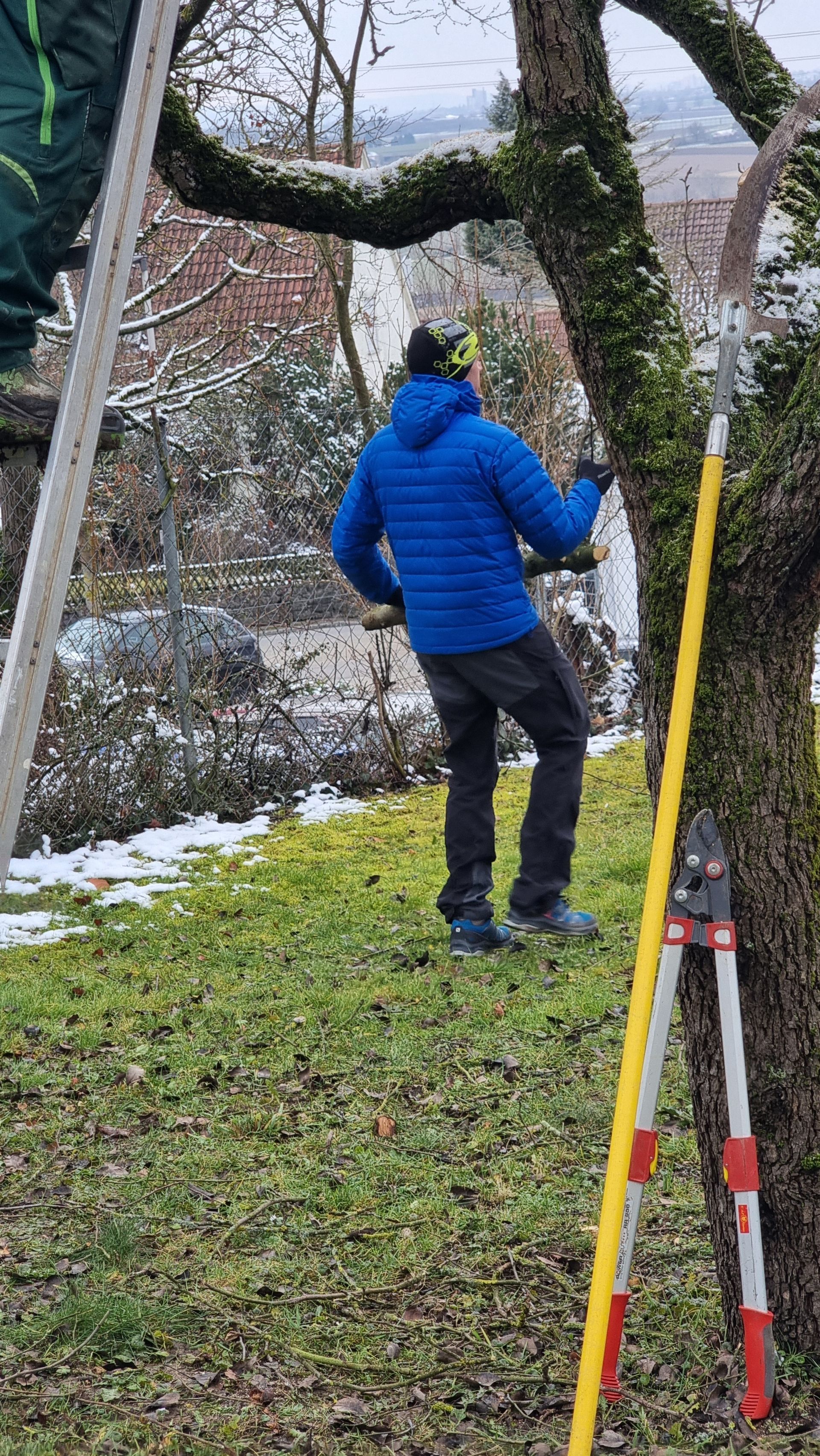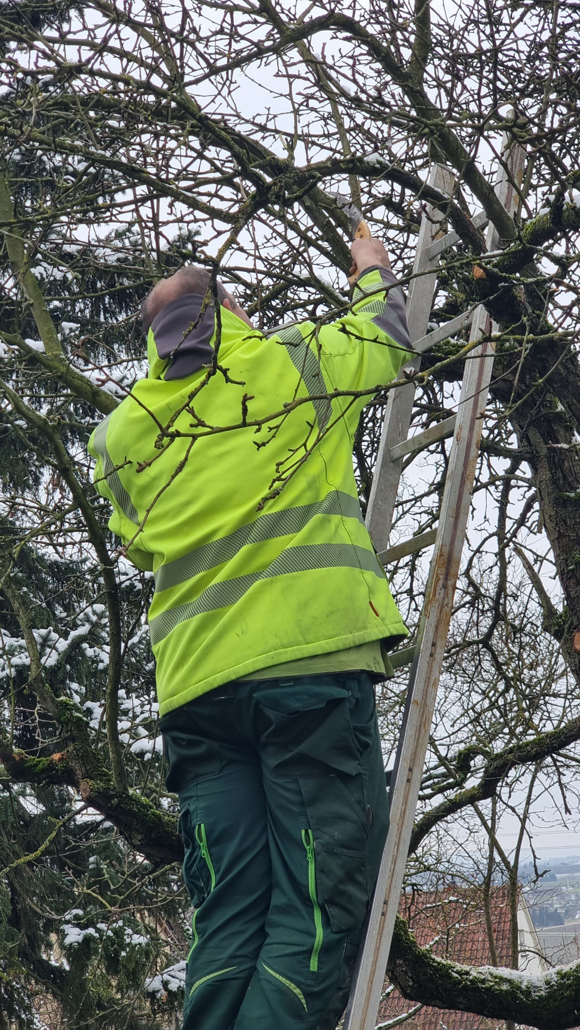 Danach merkten wir aber so langsam, aber sicher, dass es doch recht kalt war und alle freuten sich auf einen Becher Glühwein oder Punsch. Der Förderverein hatte diverse selbstgebackene Kuchen organisiert und wir kredenzten frische Brezeln. Und so konnte man dann noch in gemütlicher Runde lange über diverse Themen rund ums Bäumeschneiden fachsimpeln.