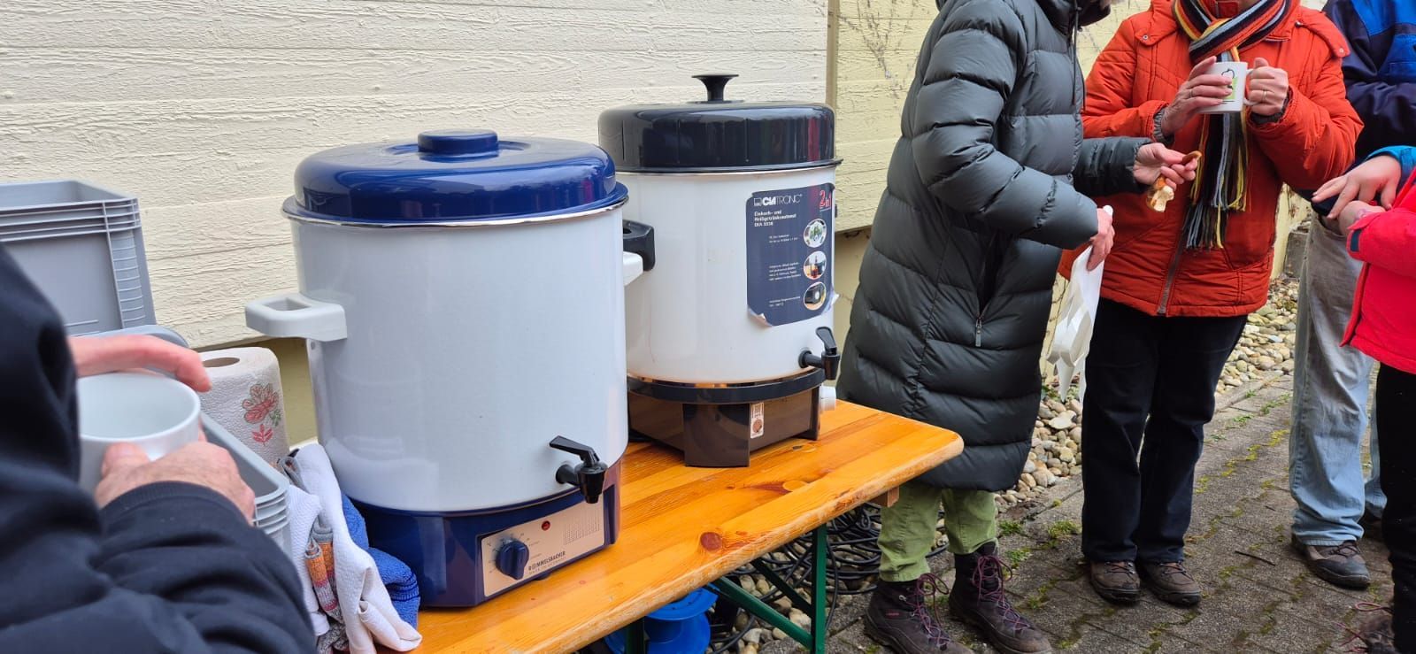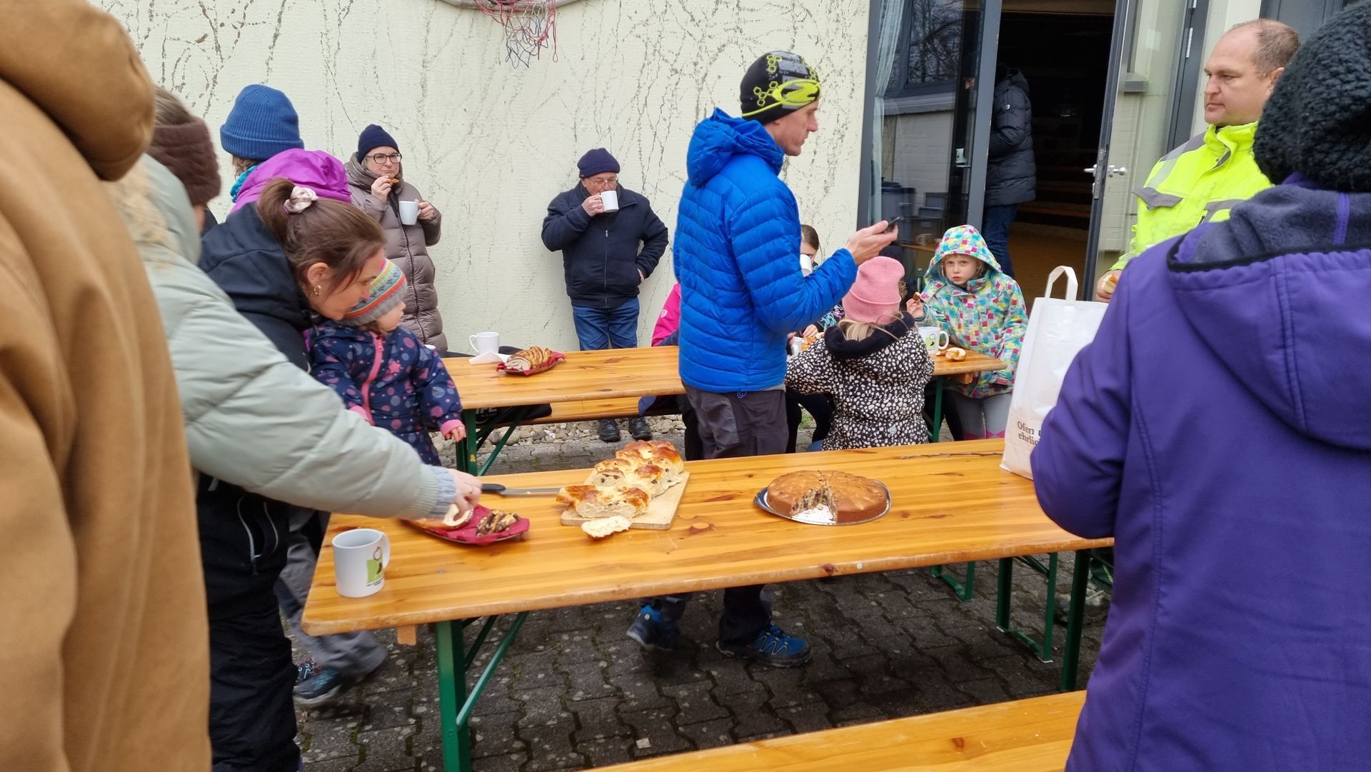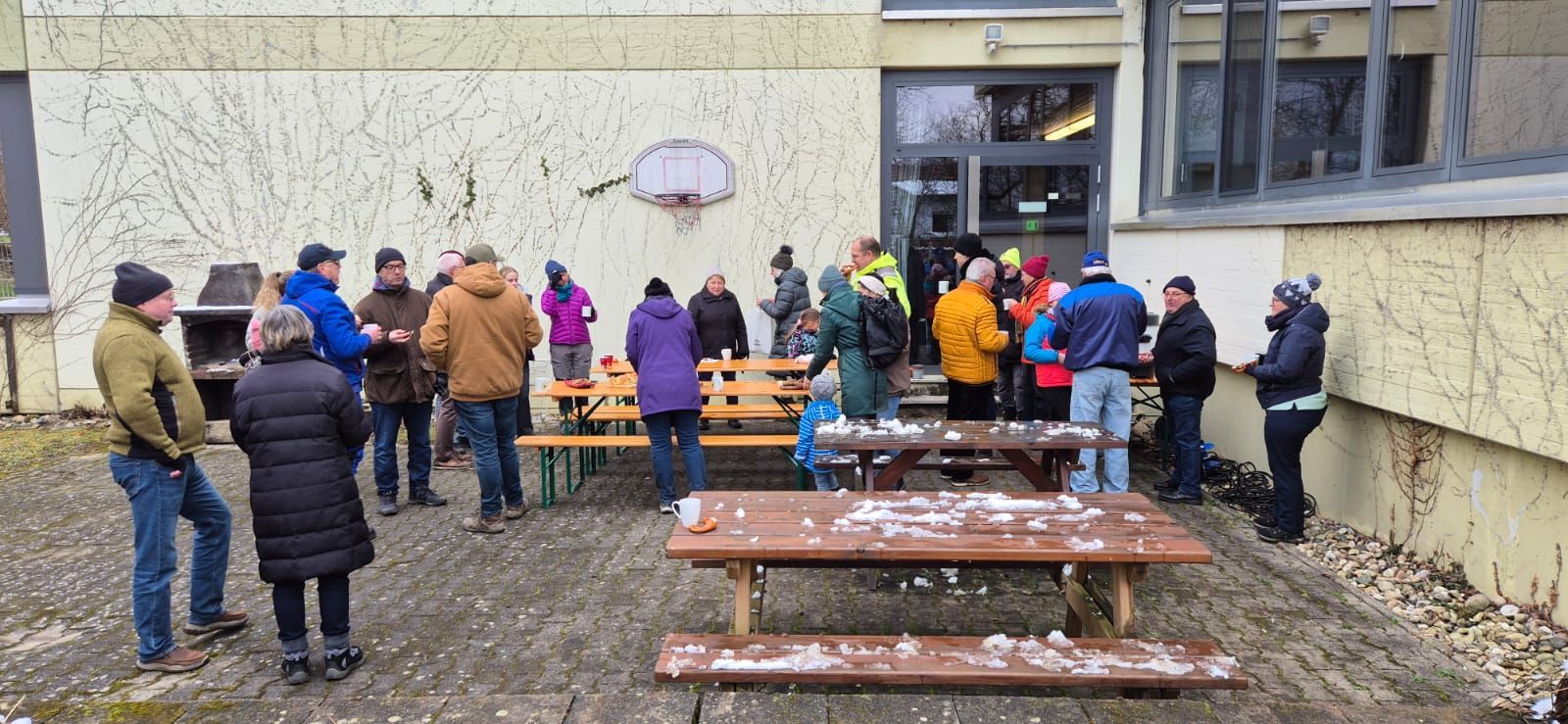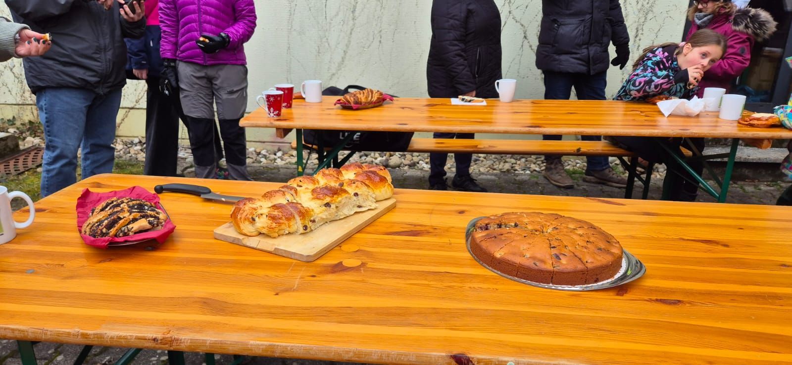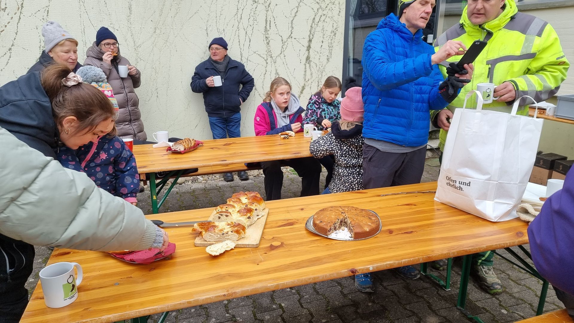 Danach merkten wir aber so langsam, aber sicher, dass es doch recht kalt war und alle freuten sich auf einen Becher Glühwein oder Punsch. Der Förderverein hatte diverse selbstgebackene Kuchen organisiert und wir kredenzten frische Brezeln. Und so konnte man dann noch in gemütlicher Runde lange über diverse Themen rund ums Bäumeschneiden fachsimpeln.