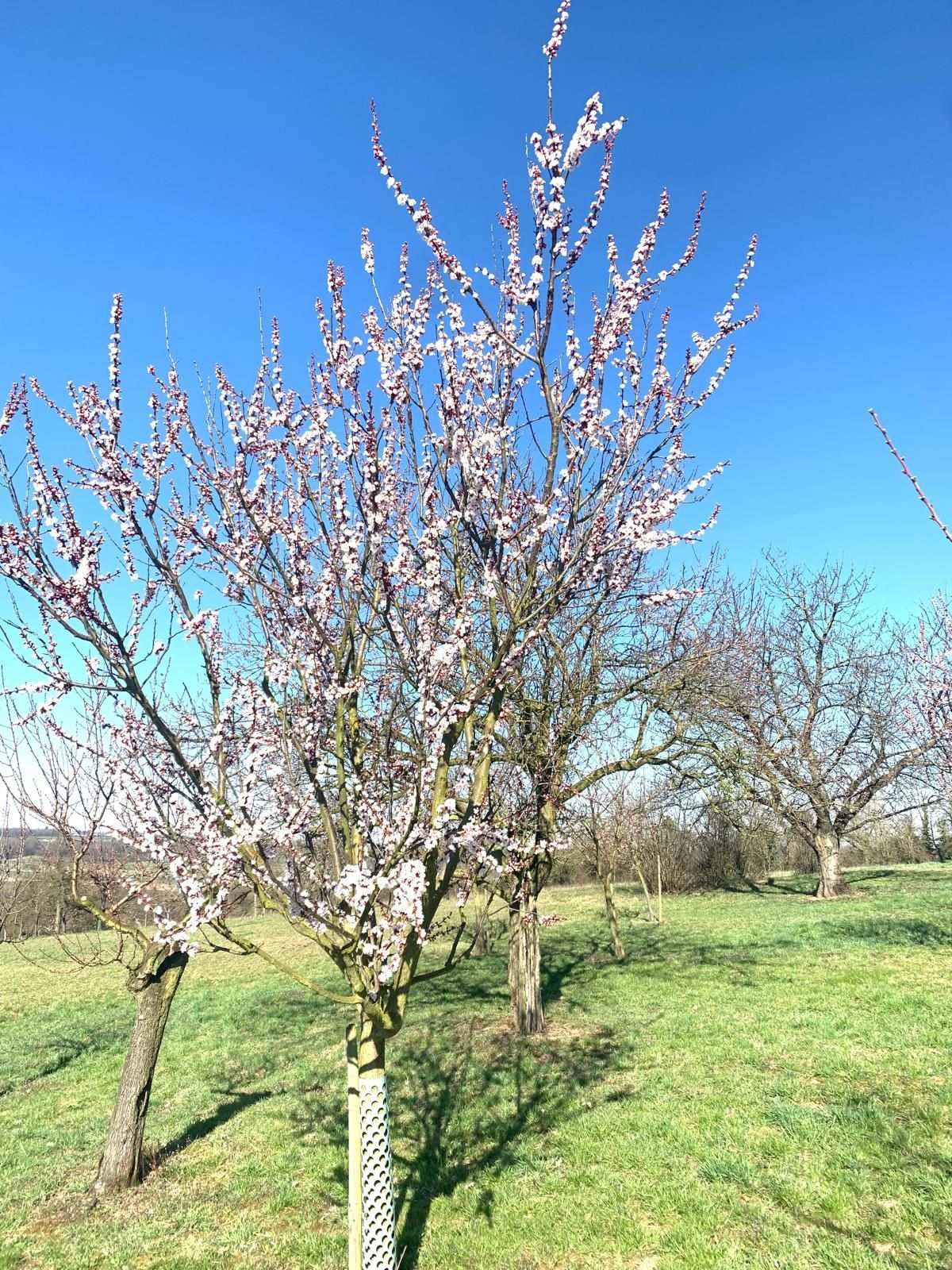 Später ging er zu den Aprikosenbäumen über, die wunderschön in Blüte standen. Hier war der Schnitt nicht so tiefgreifend. Im Grunde musste nur alles Vertrocknete und Abgestorbene herausgeschnitten werden. Auch schaffte er teilweise mehr Licht, indem er größere Äste heraussägte.